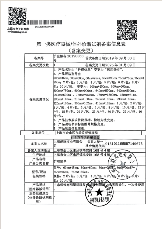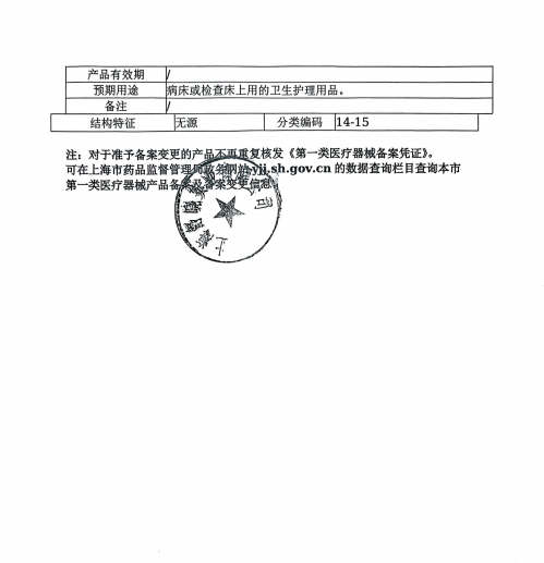 【产品适用范围】病床或检查床上用的卫生护理用品