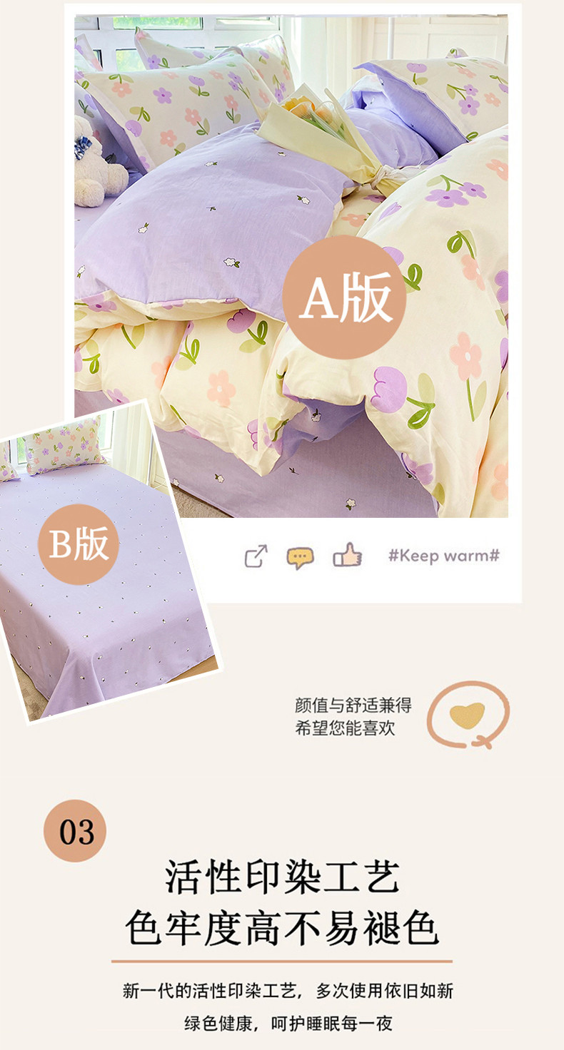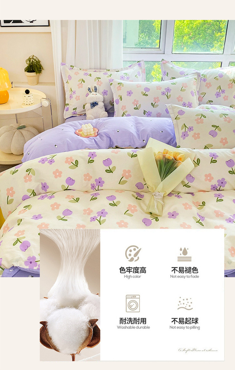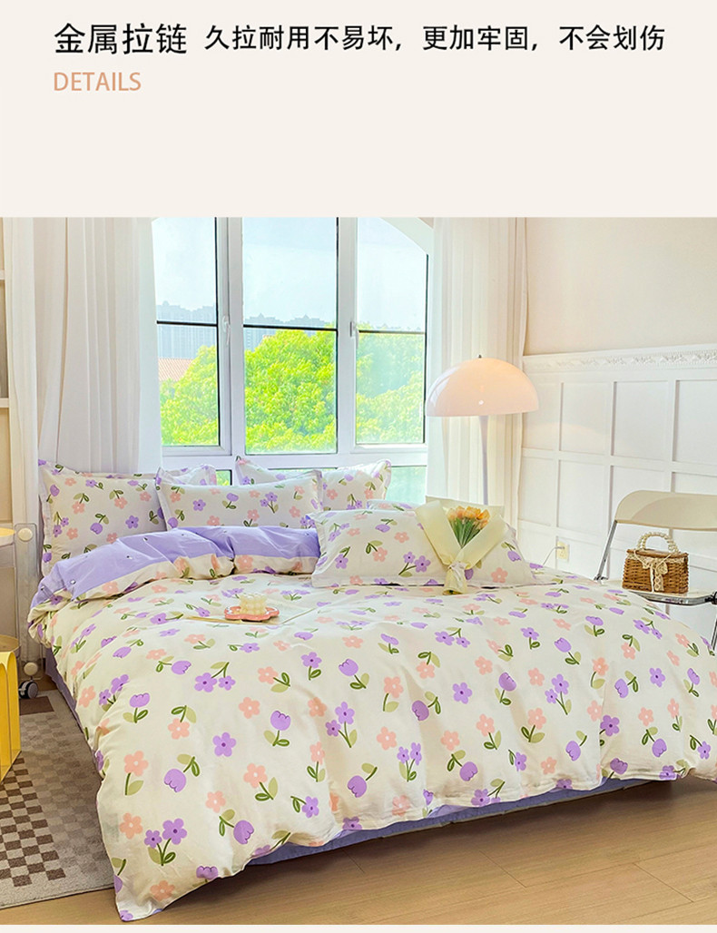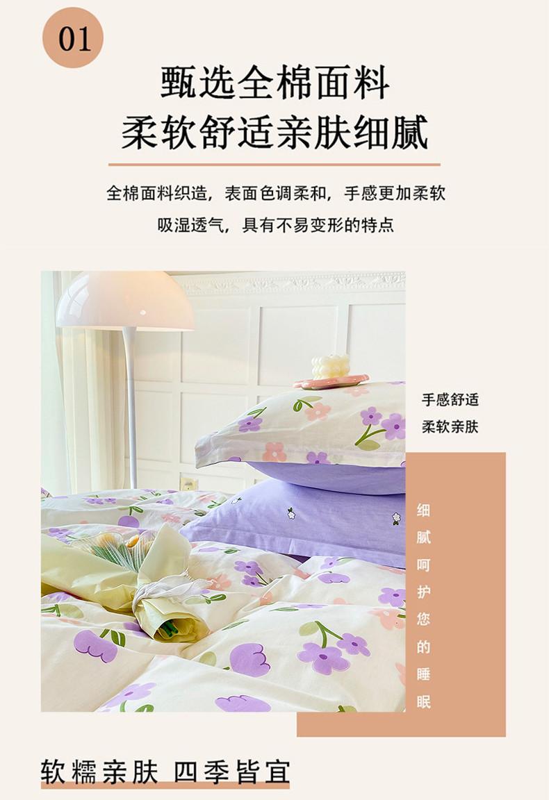 南方生活全棉印花四件套(紫色小花) 200*230cm