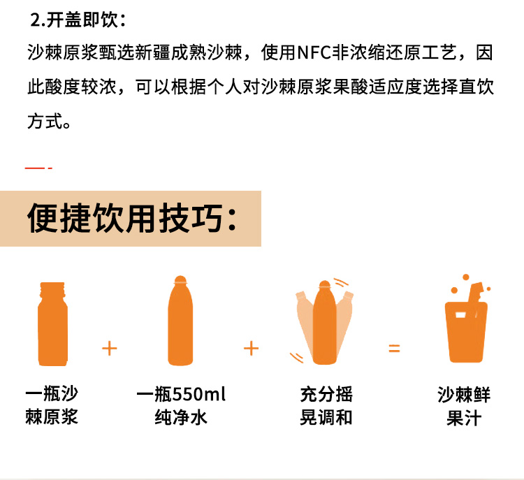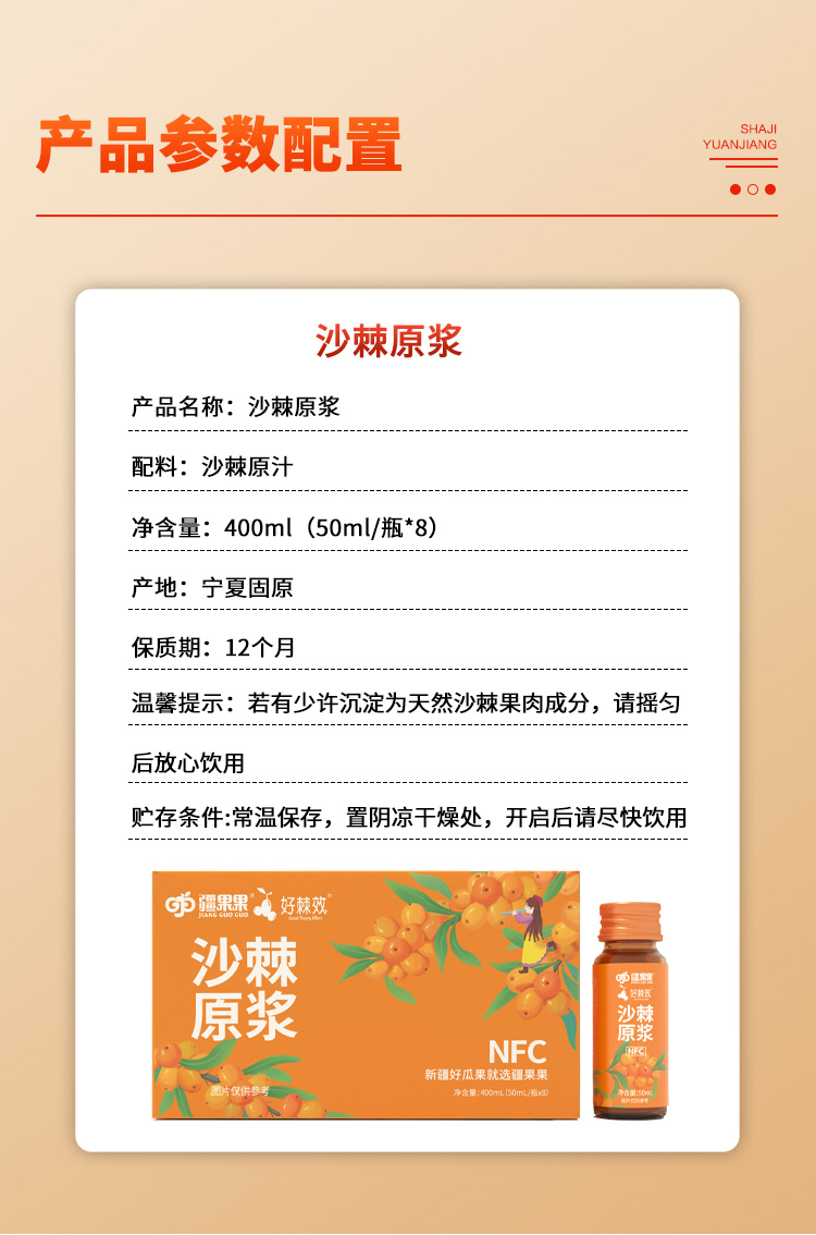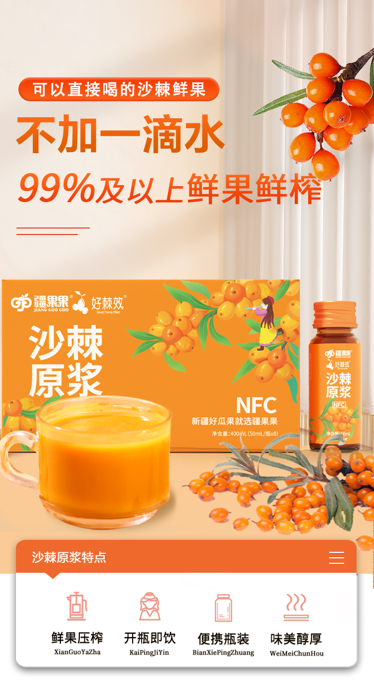 疆果果沙棘原浆液50ml*8瓶/盒新疆鲜果生榨果汁补充维C饮品