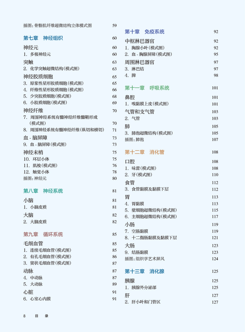 主要包括:1.正常人体的组织结构分步骤手绘图和切片图部分; 2.正常胚胎发育与有关畸形分步骤手绘图部分;3. 学生绘图大赛优秀作品展示。