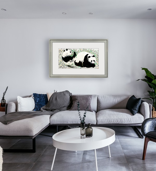 吴冠中综合版画《熊猫之二》装裱尺寸:96cm×61cm