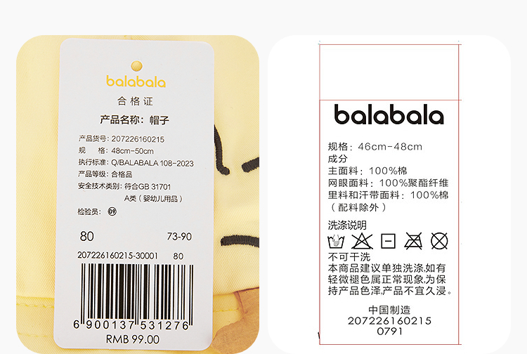 【商场同款】巴拉巴拉婴童帽子宝宝盆帽防晒遮阳卡通造型萌趣可爱