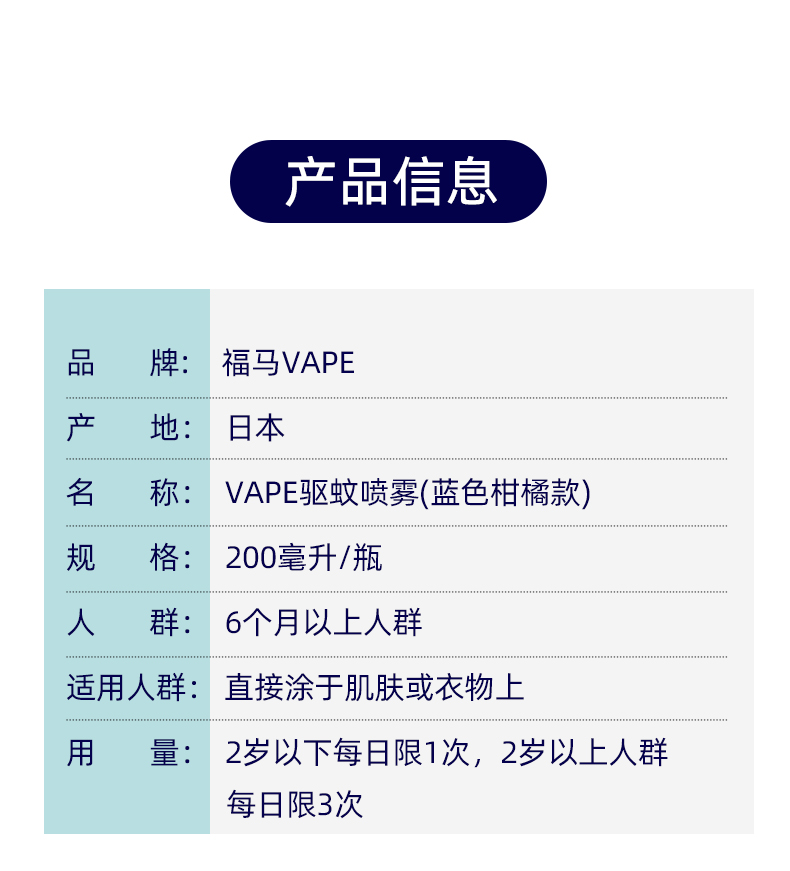 日本福马vape柑橘味驱蚊液原装进口200ml
