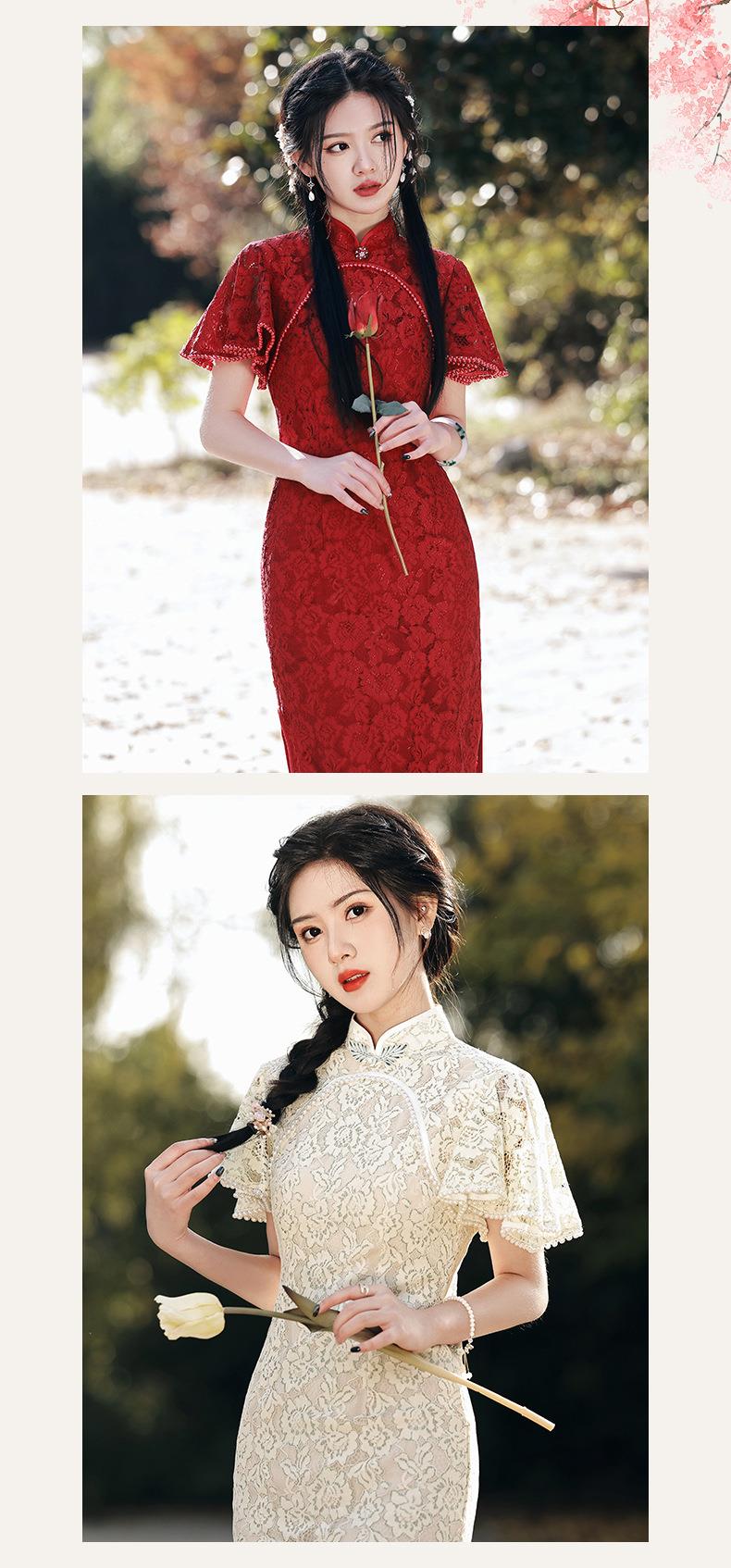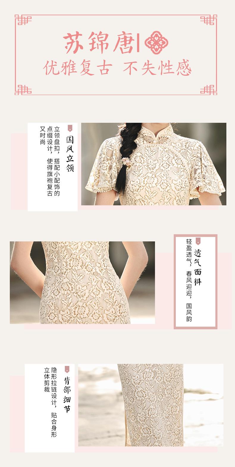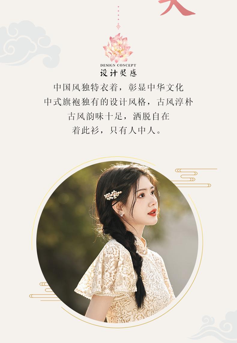 2023春夏新款飞飞袖双层蕾丝中长款圆襟旗袍连衣裙少女改良旗袍