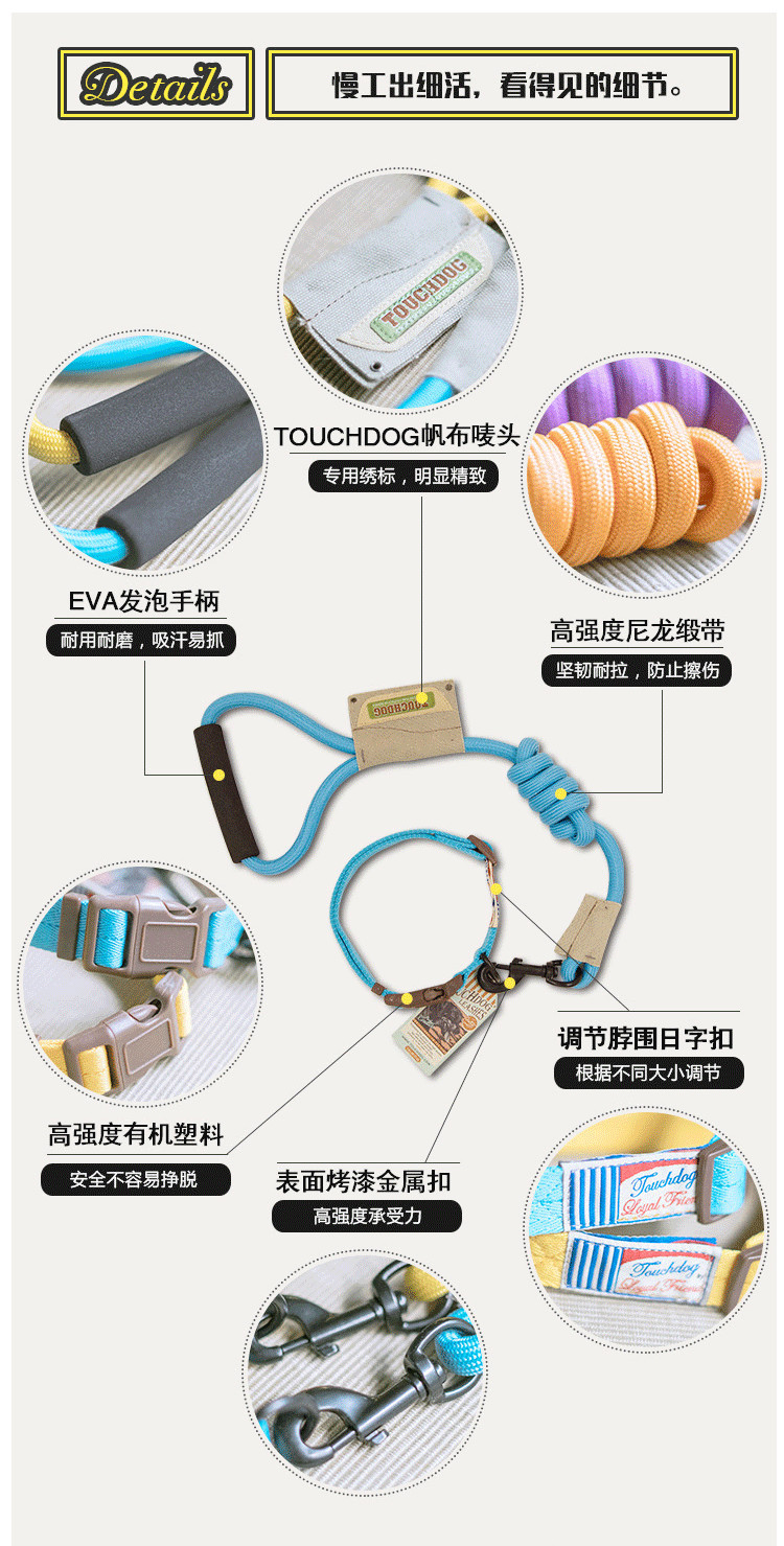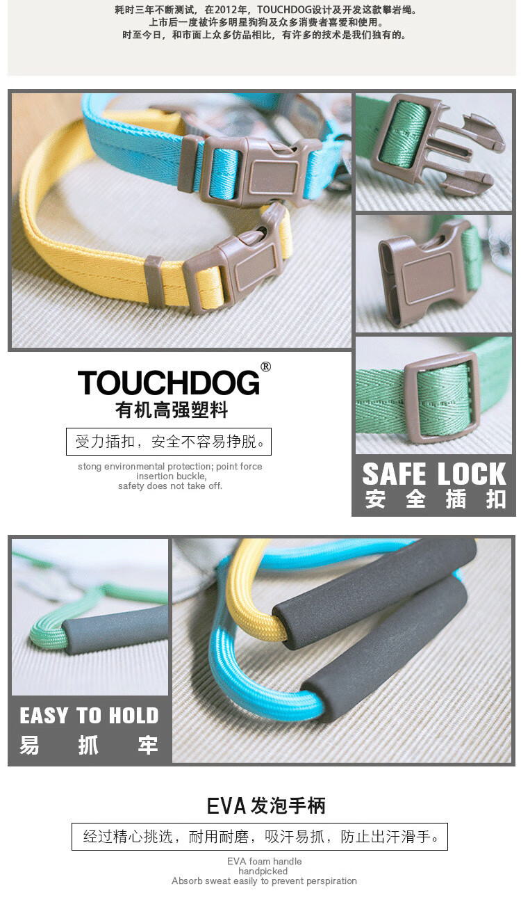 TOUCHDOG狗狗牵引绳攀岩圆绳胸背套(颜色随机)