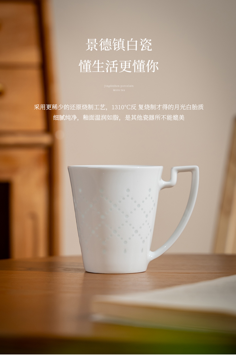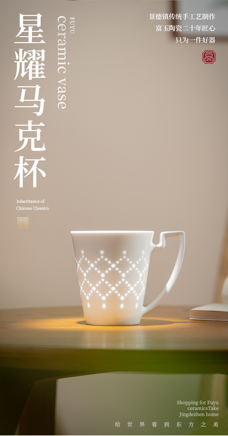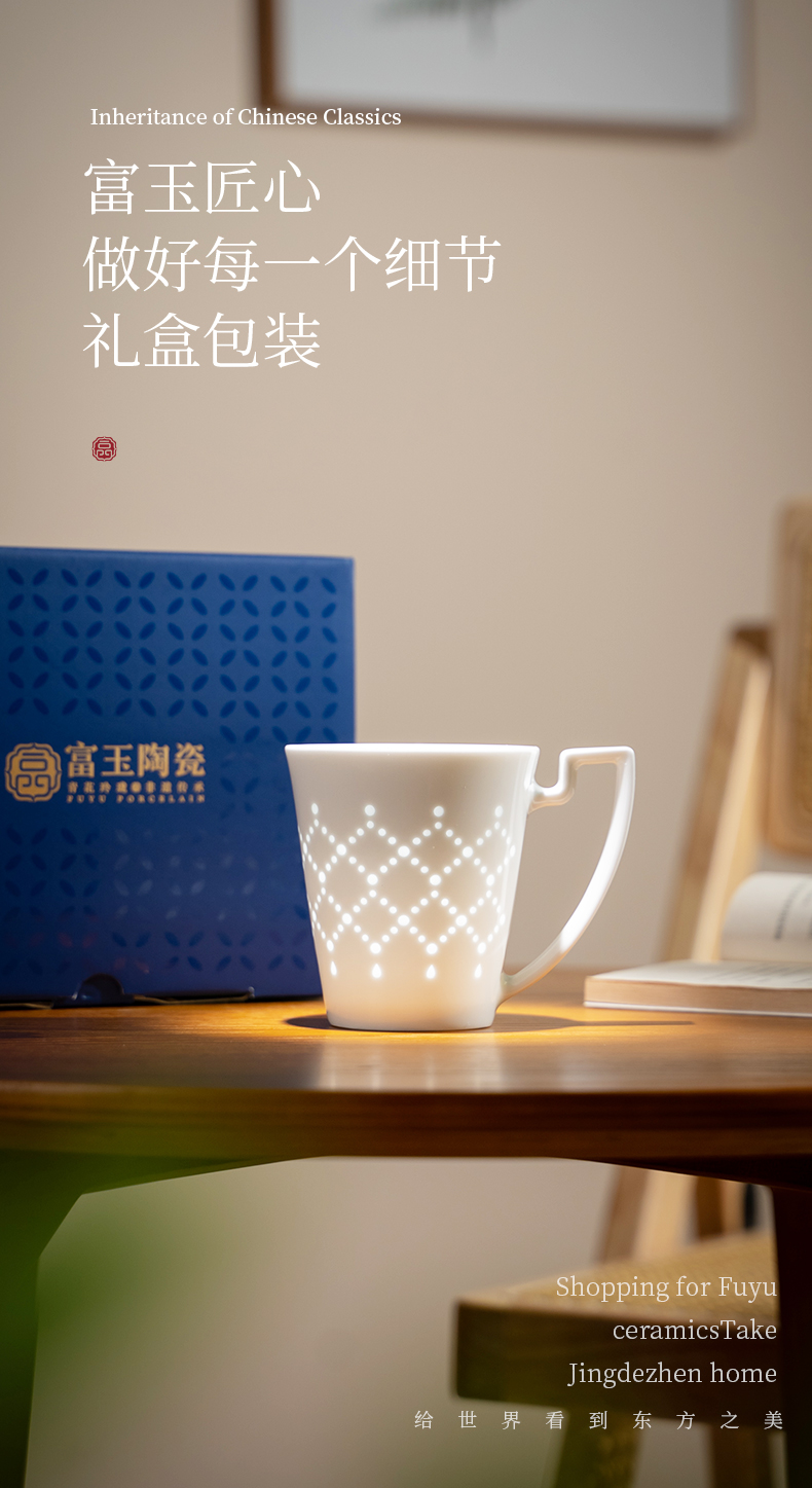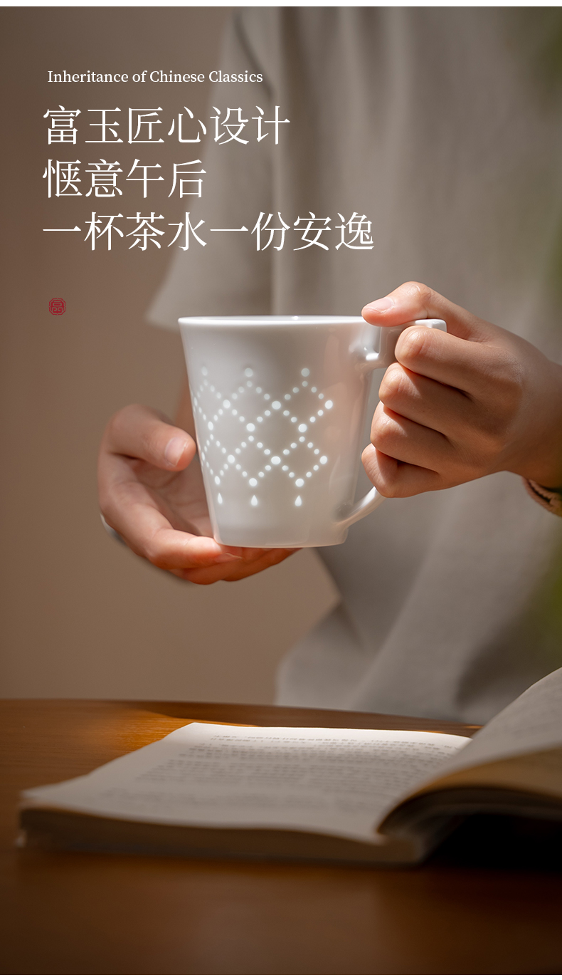 景德镇富玉陶瓷星耀马克杯家用大容量玲珑茶水杯女士高颜值咖啡杯