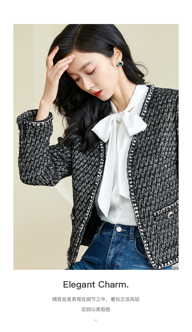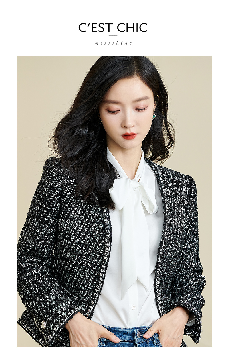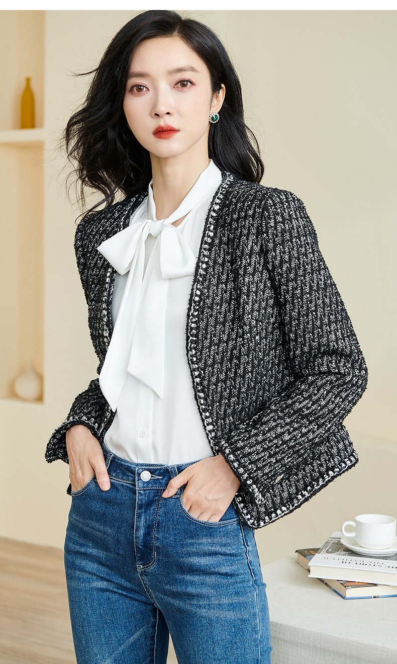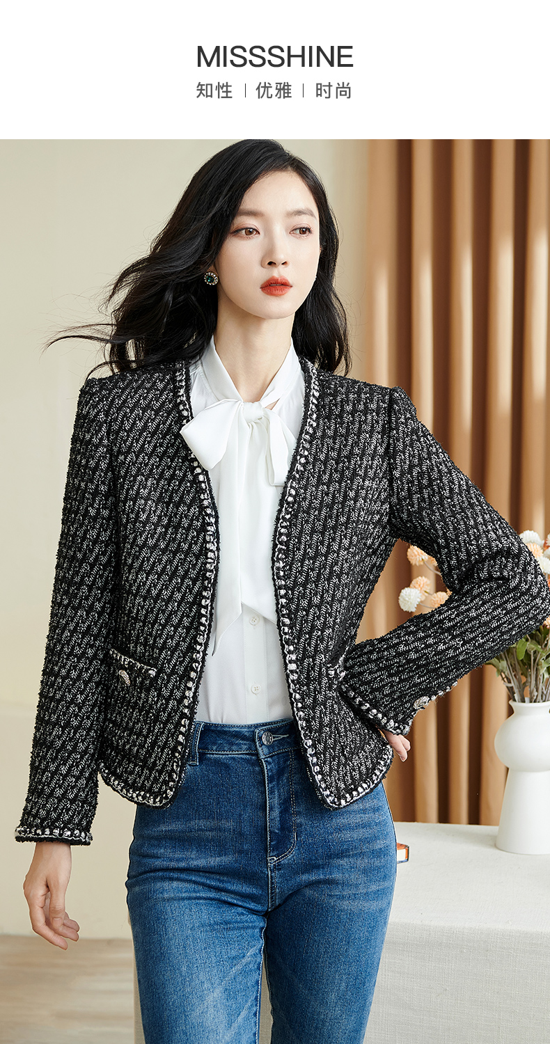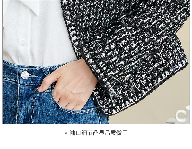 米思阳2026春季新款时尚气质直筒短外套黑白色长袖开衫外搭女3221