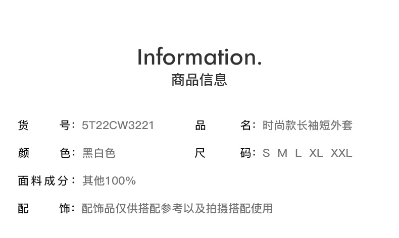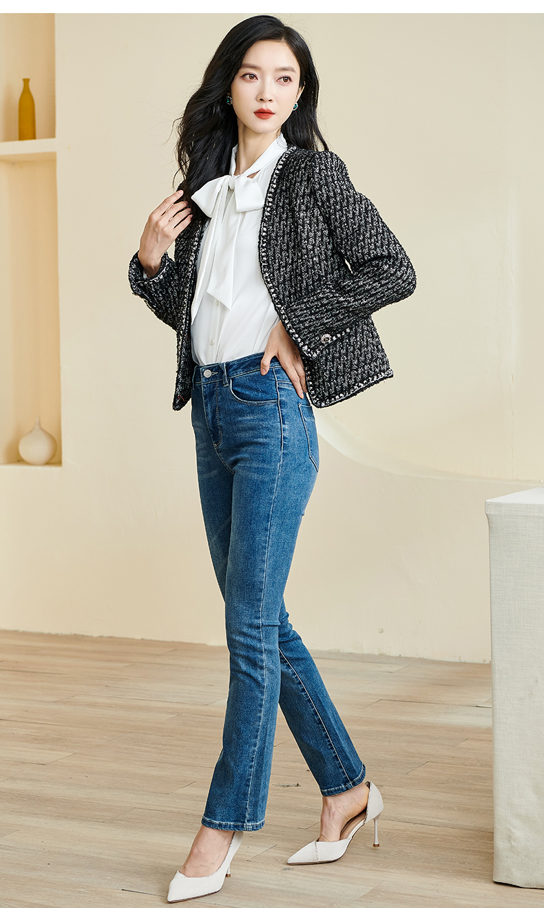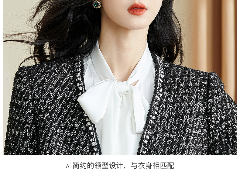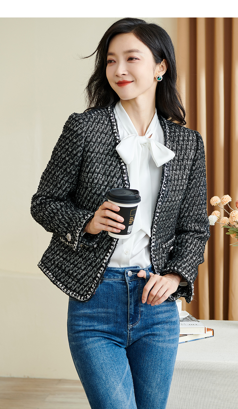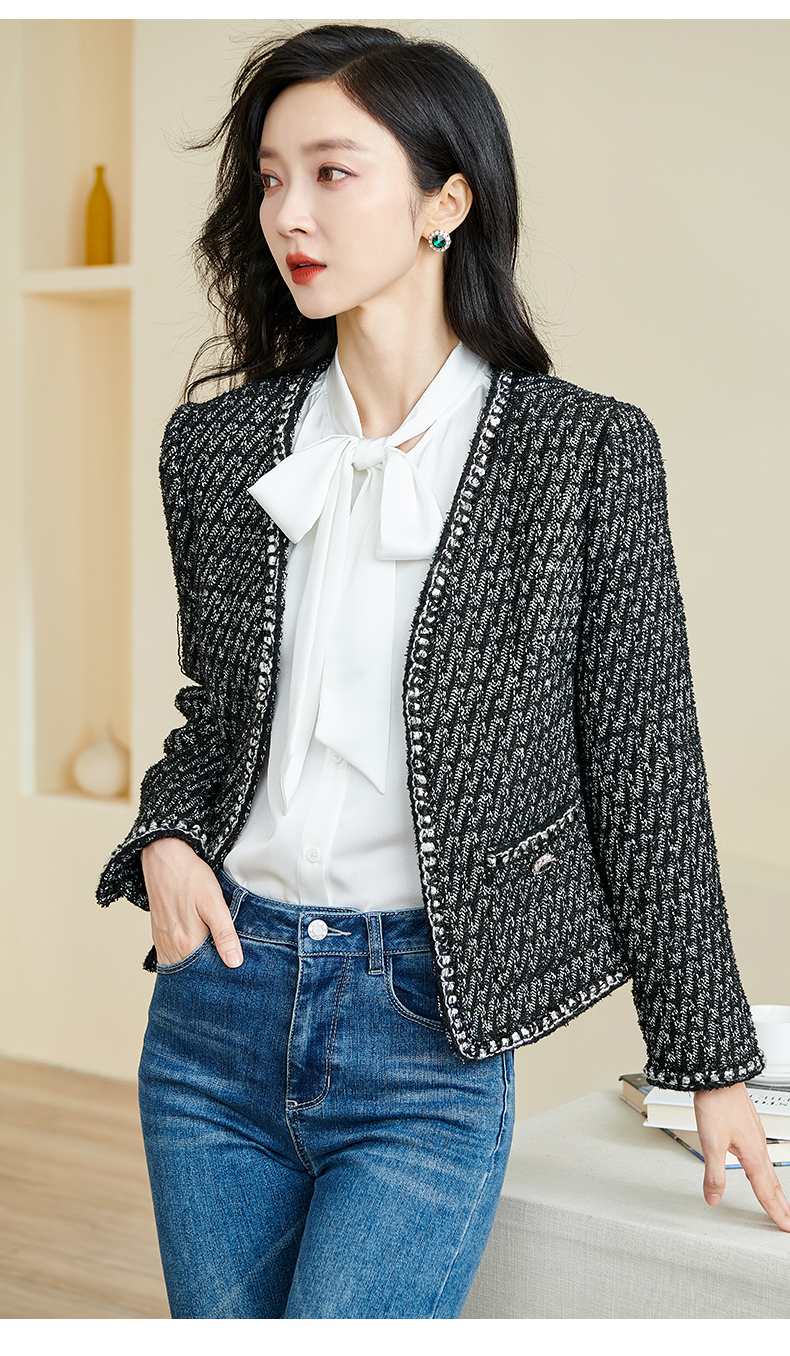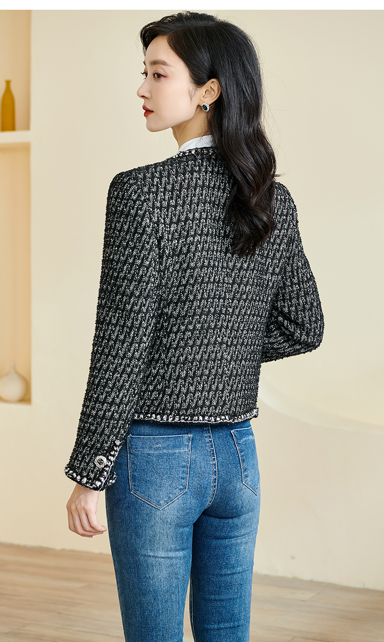 米思阳2026春季新款时尚气质直筒短外套黑白色长袖开衫外搭女3221