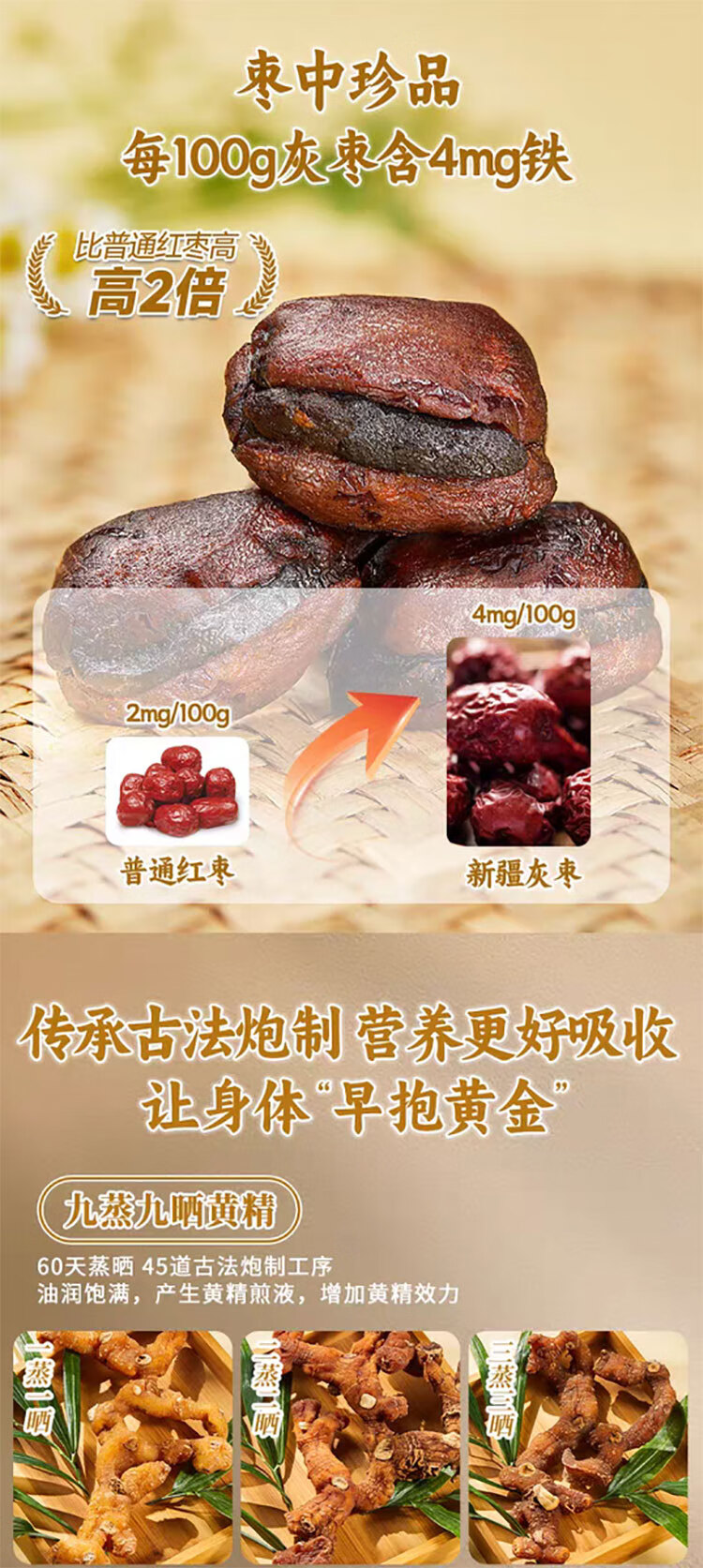 神农金康 黄精抱枣250g/罐九蒸久晒古法九制黄精开袋即食红枣蜜饯解馋零食 原生态真滋补喝护家人健康