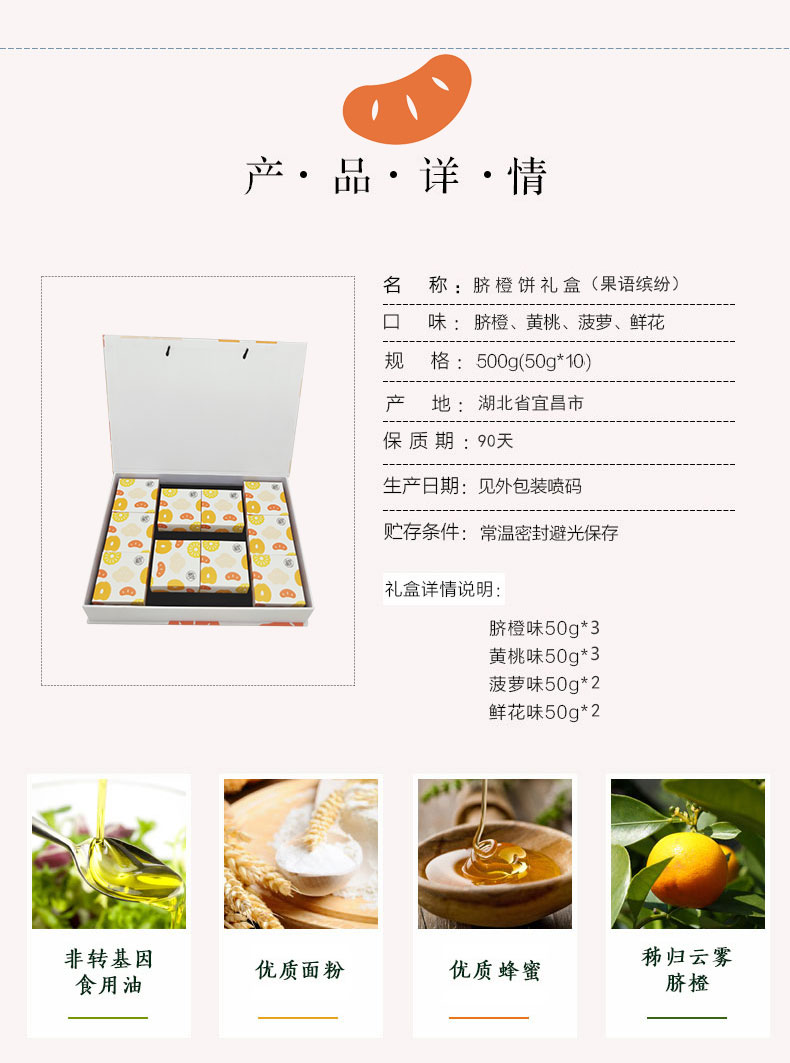 【严选】屈姑苏月系列果语缤纷脐橙饼礼盒500g/盒(50g*10枚) (厂家直发)