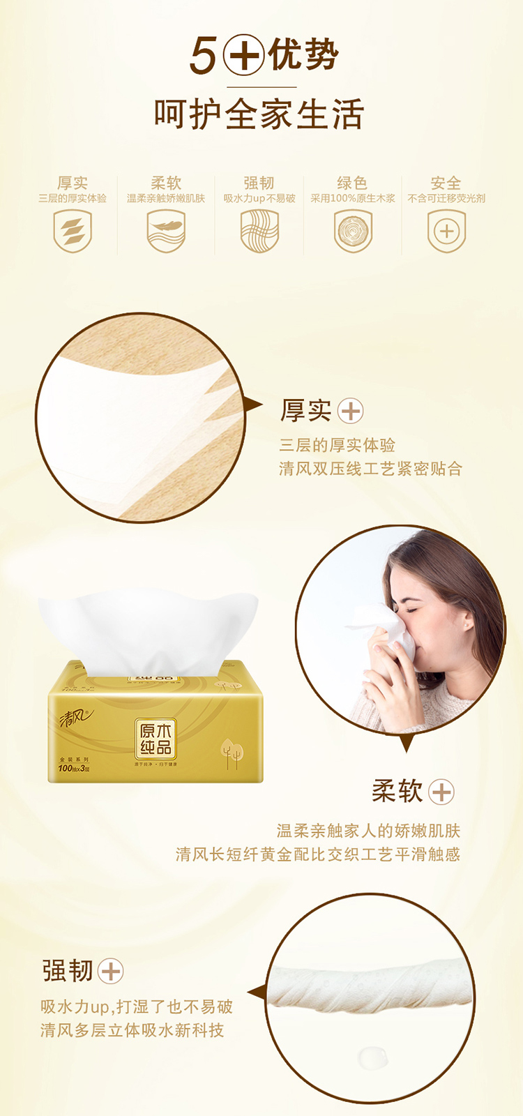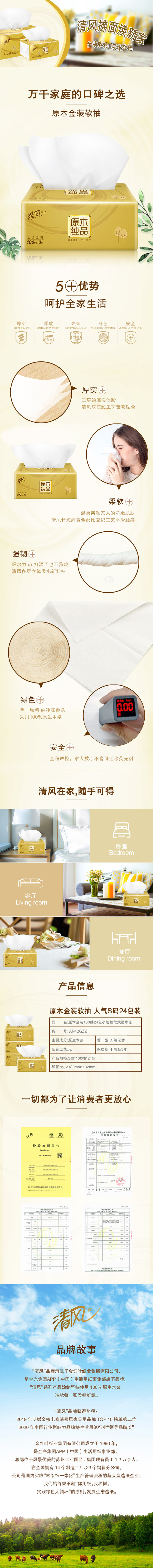 清风原木金装系列 100抽抽取式面纸 24包180mm*132mm