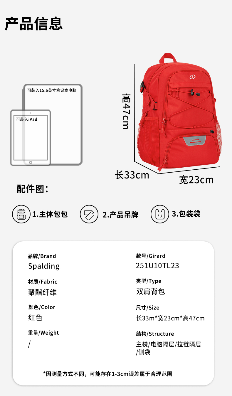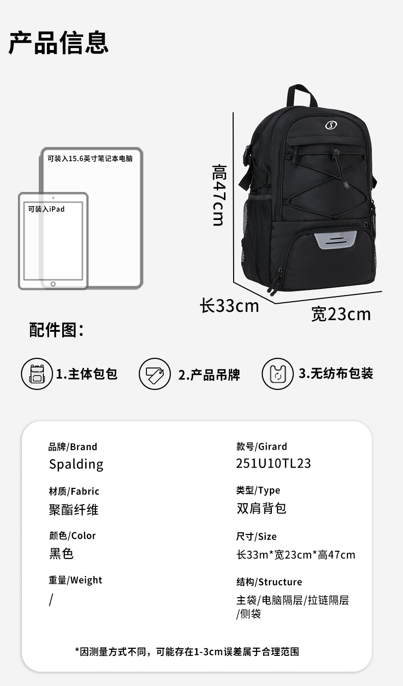 Spalding/斯伯丁大容量双肩包251U10TL23