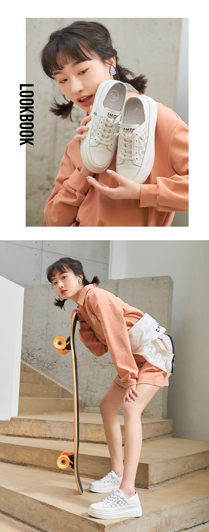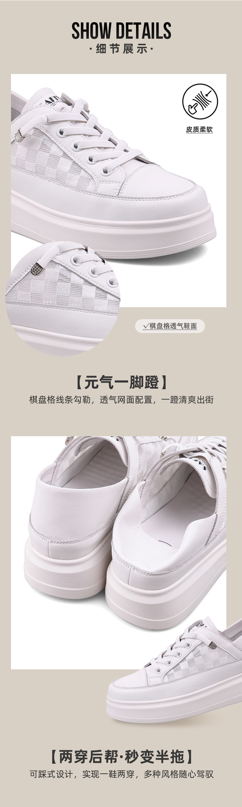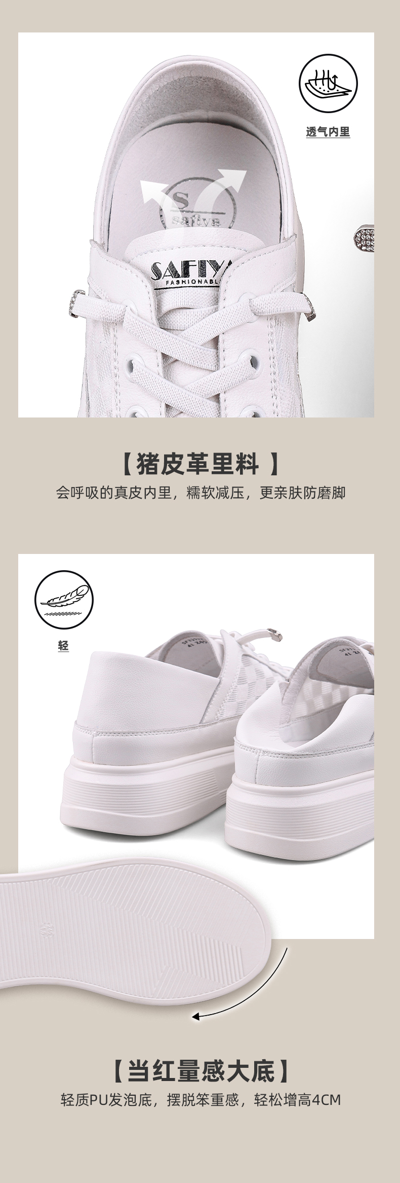 【年后发货】Safiya/索菲娅 春夏两穿2024年春季新款网面透气薄款厚底松糕板鞋 SF31112052/SF41112052