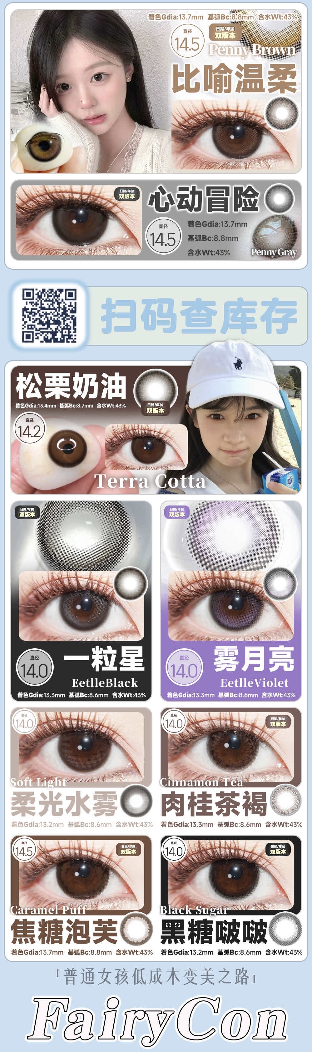 [韩国美瞳] Fairycon正品日抛比喻温柔心动冒险松栗奶油纯欲甜美复古美瞳10片