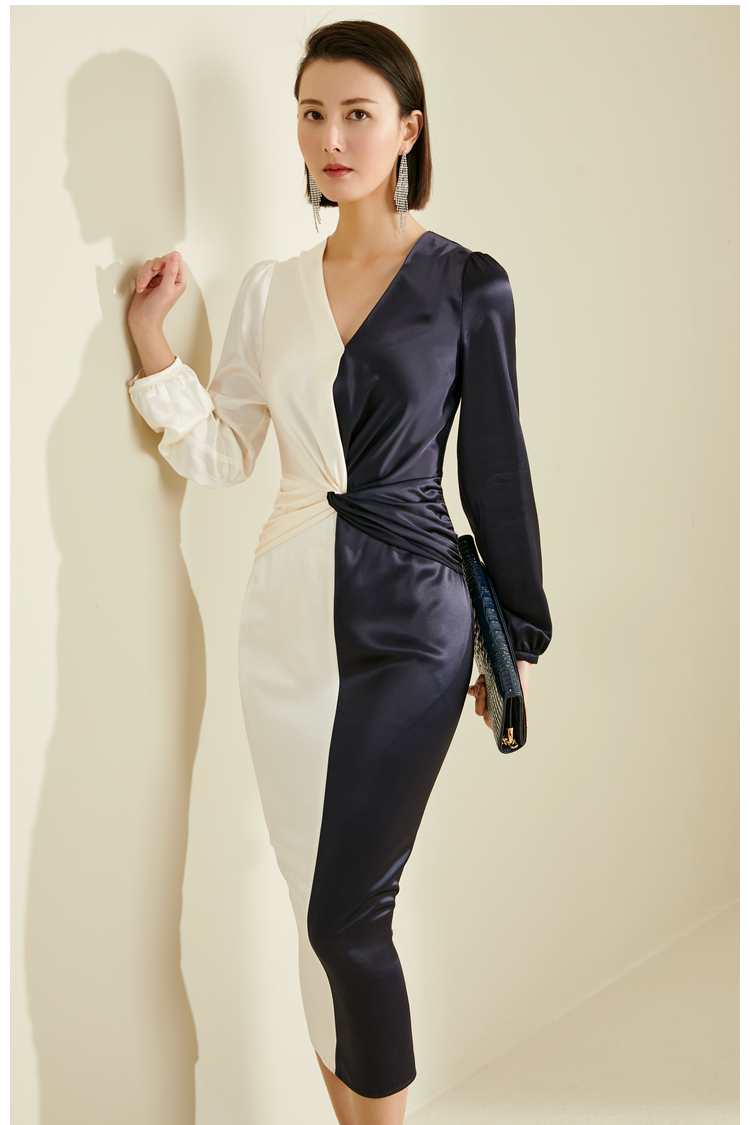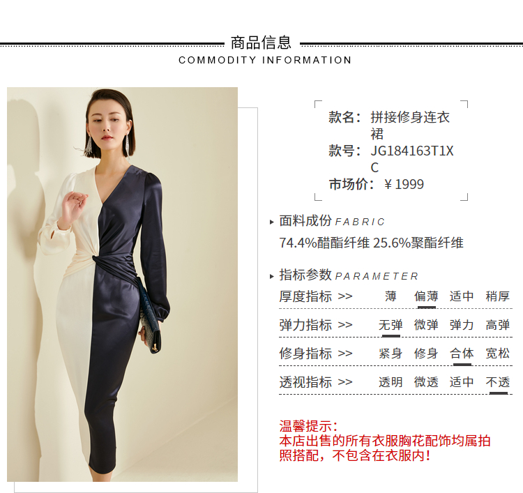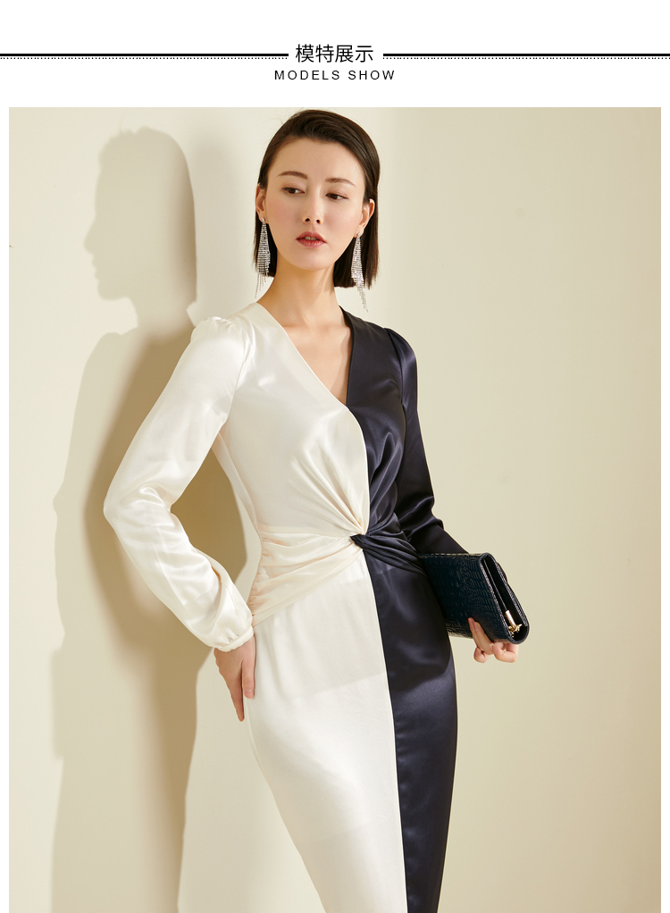 “双面情人”JG184163T1XC颈袖添香季新款气质收腰显瘦包臀时尚修身女士中长款连衣裙