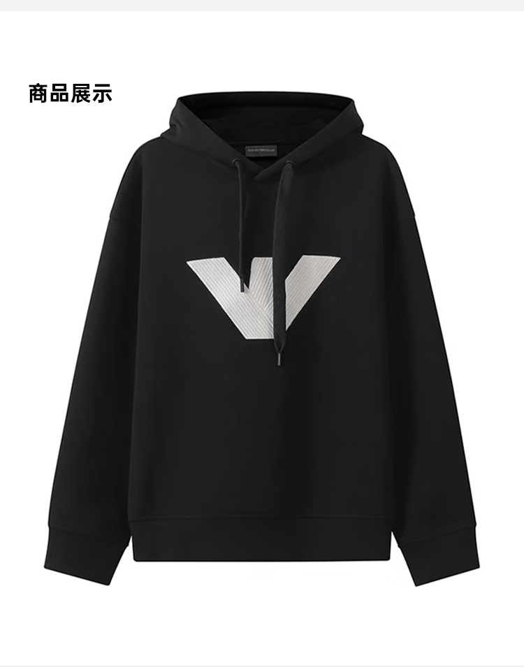 EMPORIO ARMANI 阿玛尼 男士棉质鹰徽标印花连帽长袖卫衣 黑色 6L1MM6 1JHSZ 0999