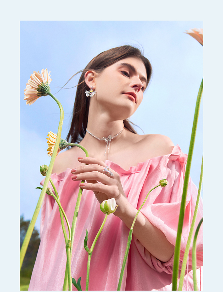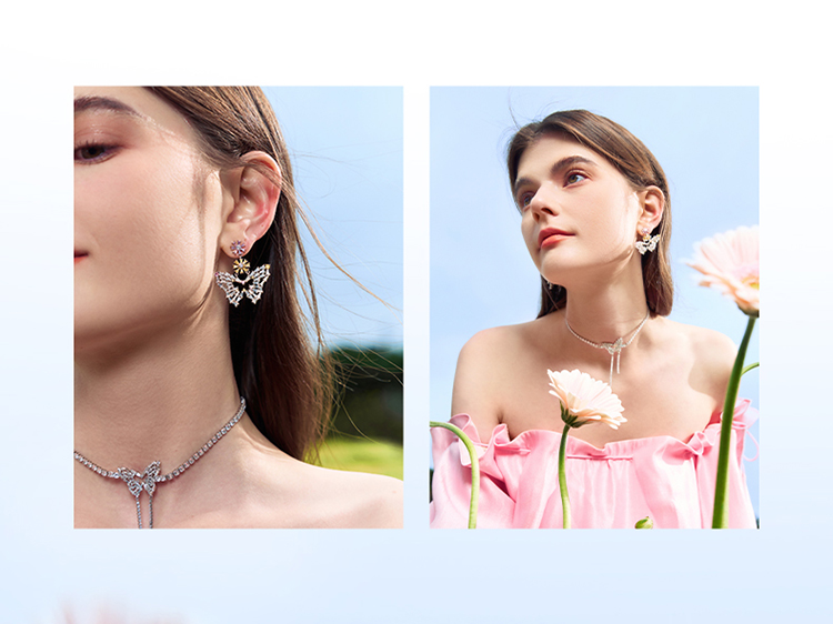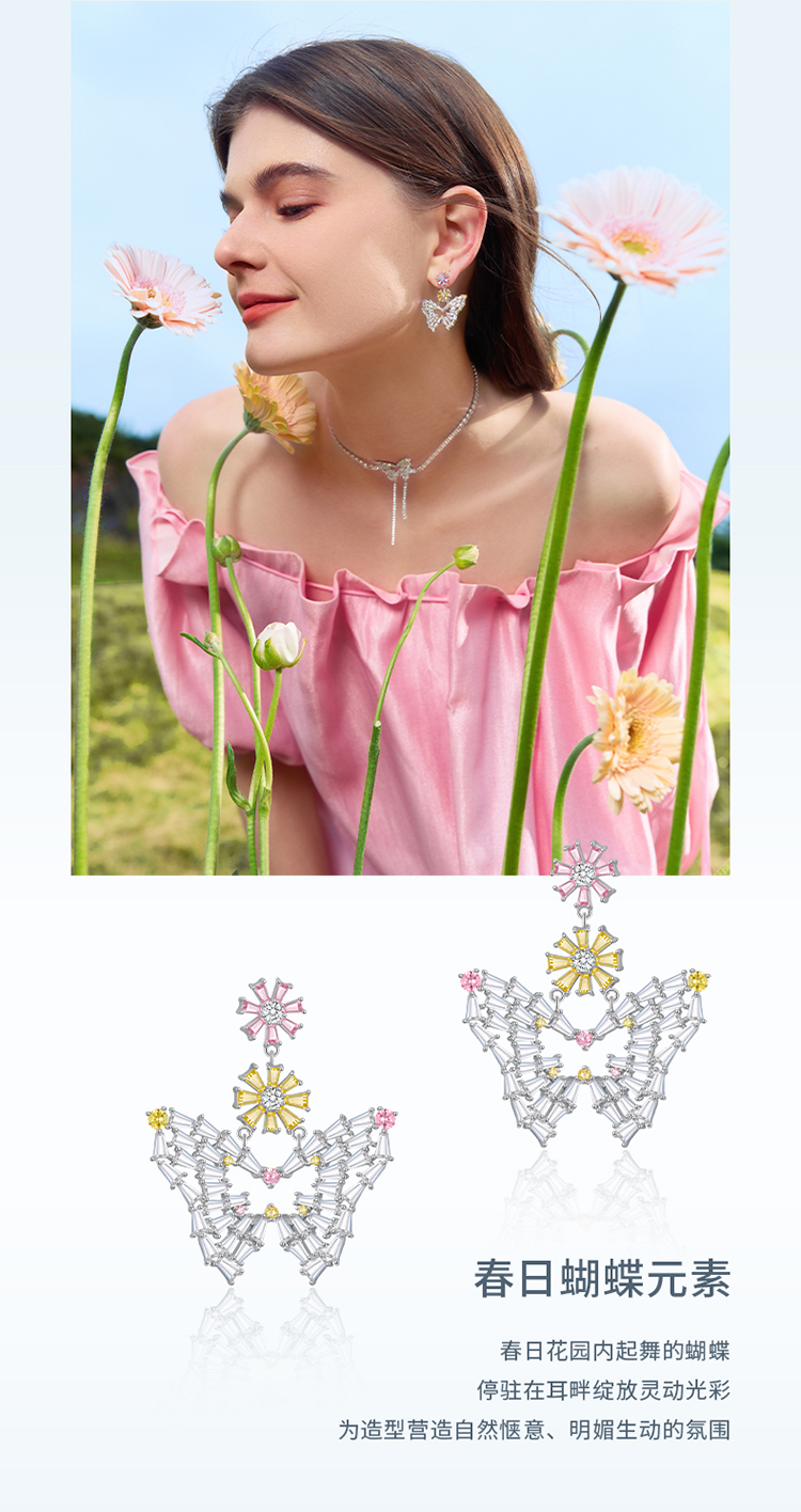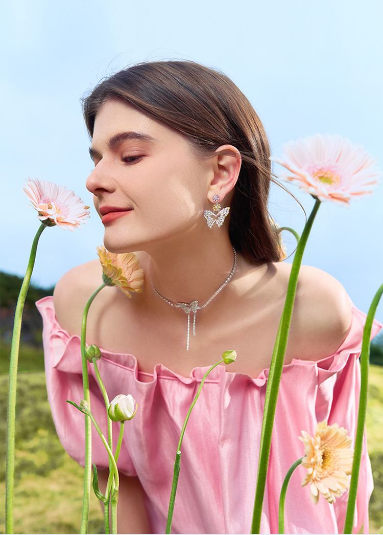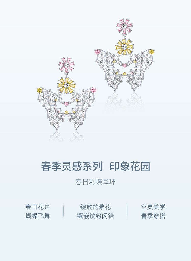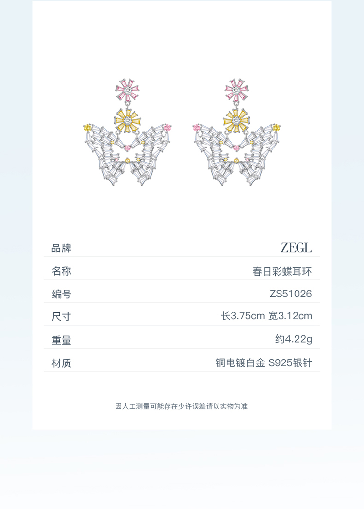ZEGL设计师印象花园系列花朵蝴蝶耳环女小众时尚耳钉925银针耳饰
