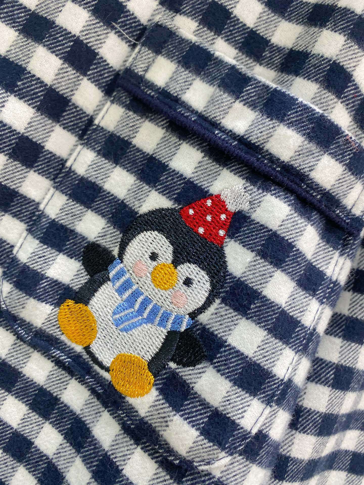 「磨毛亲肤保暖」 格纹+企鹅,可爱到想抱着睡 经典蓝白/红白格纹自带松弛感,口袋上的小企鹅刺绣软萌又治愈~