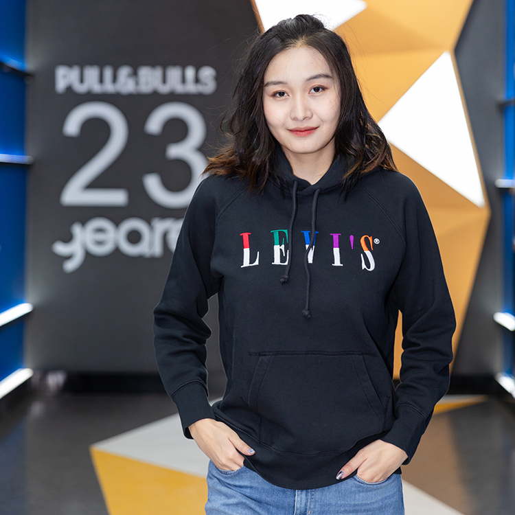 Levis李维斯 女士黑色加绒连帽套头卫衣359460247