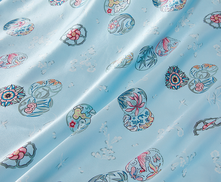 所谓皮球花,不是指某一种特别的花卉,其实是一种变形的装饰方法,把各种花卉纹样,统一变成圆形的样子,像一个一个色彩缤纷的小皮球。有的聚在一处,有的天各一方。因为皮球花的说法显得过于通俗,而纹样的特点只是圆圆的一团,所以又被叫做团花:花团锦簇,多几分文雅。