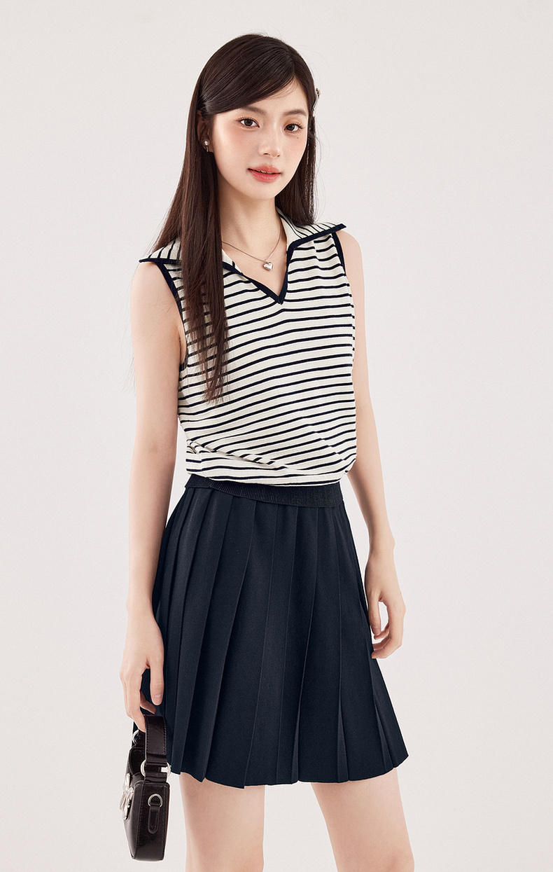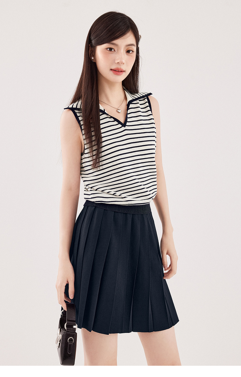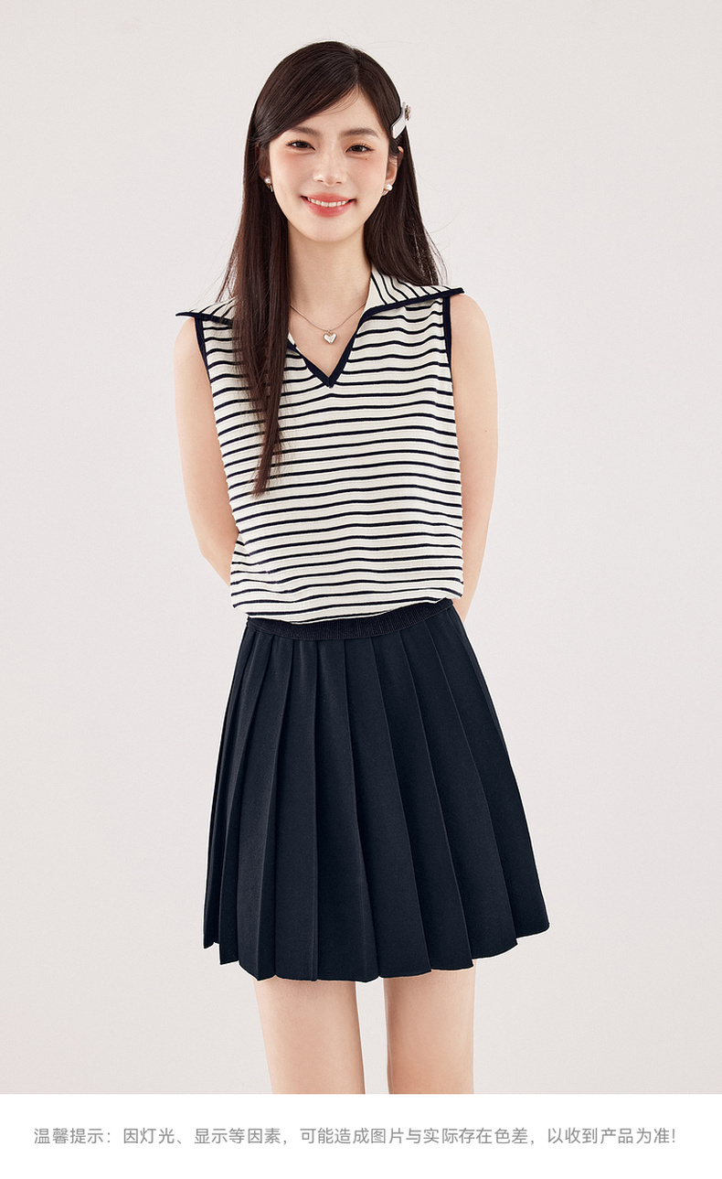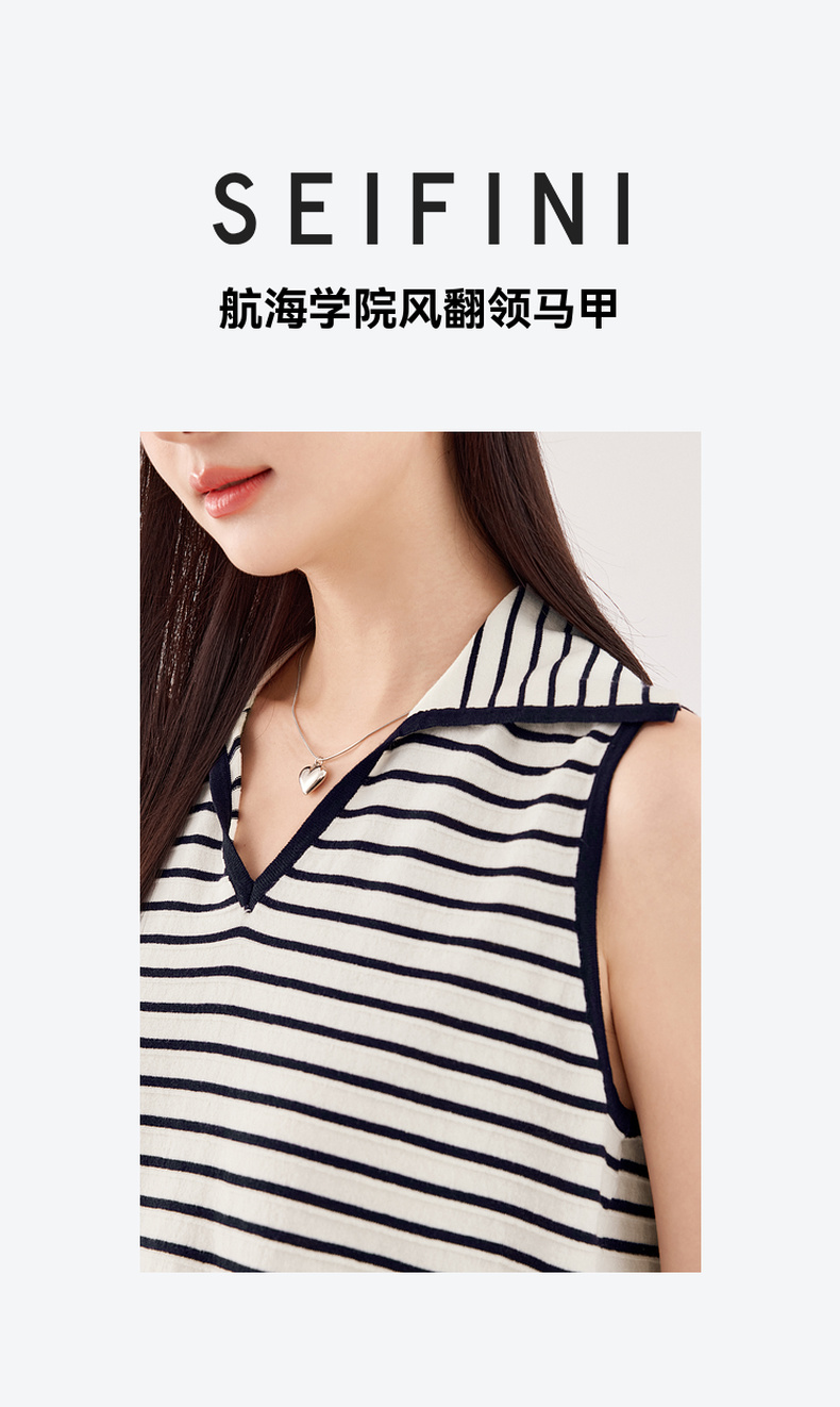 【严选】【心动毛衣】诗凡黎学院风条纹针织马甲2024秋新款时髦减龄上衣女SF7131351