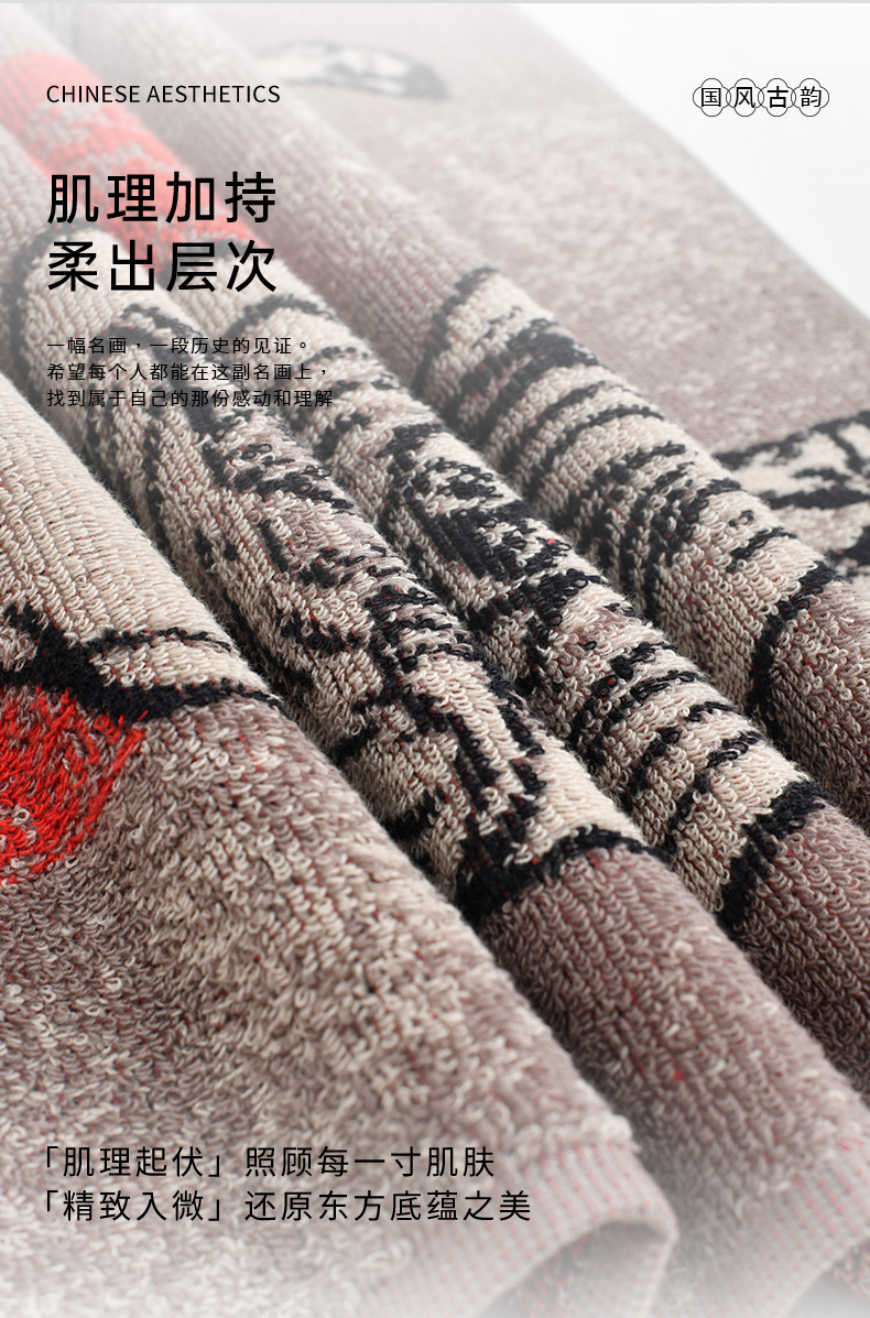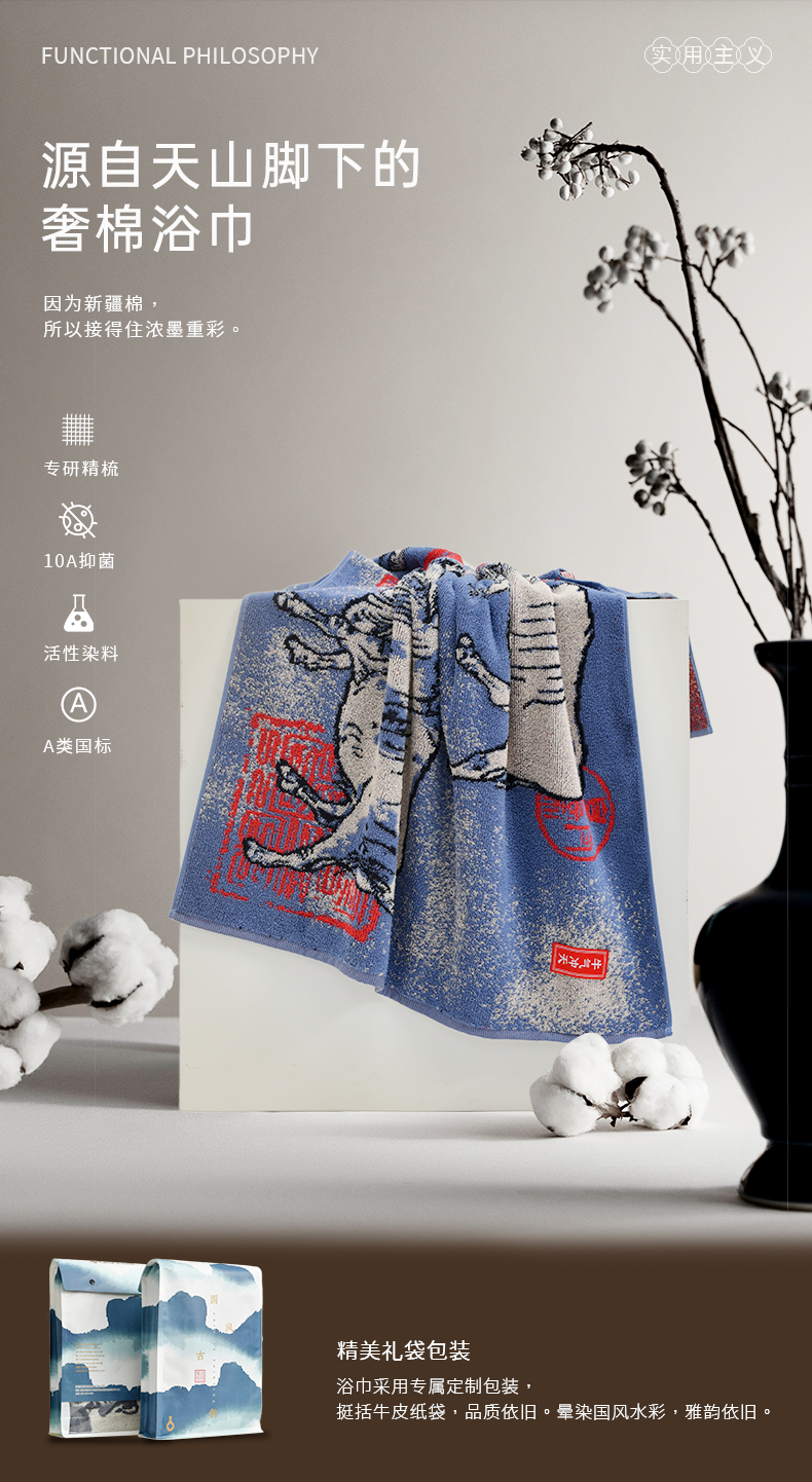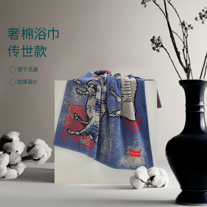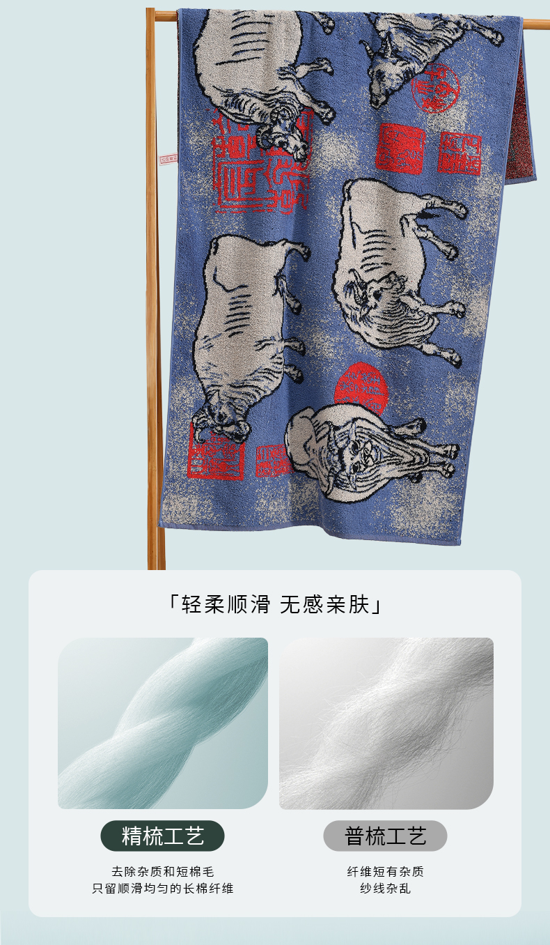 洁丽雅五牛图纯棉浴巾2025新款家用洗澡巾中式国画风男女吸水加厚