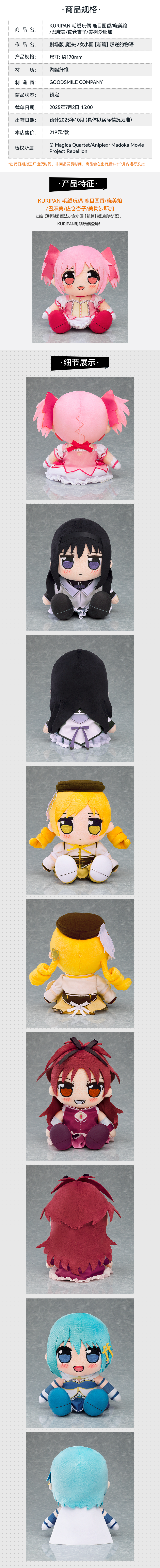 【GSC预售定金】KURIPAN 毛绒玩具 鹿目圆香/晓美焰/巴麻美/佐仓杏子/美树沙耶加