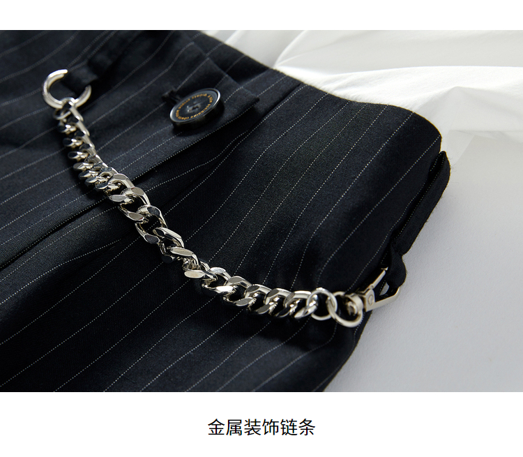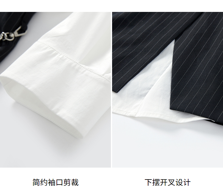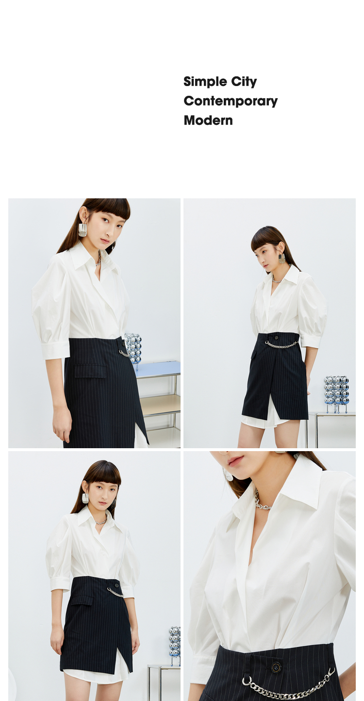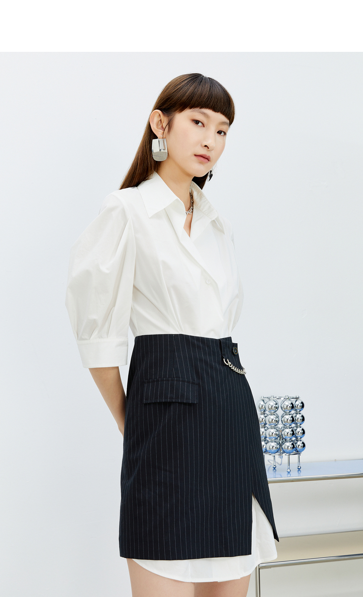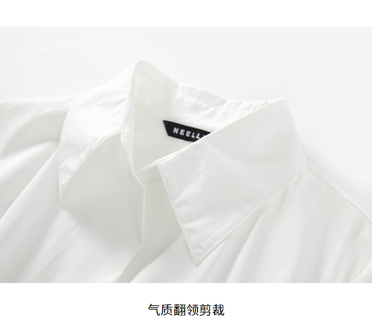 NEELLY纳俪白衬衫拼接连衣裙女中长款小个子气质泡泡袖单排扣上衣N22031Y01134