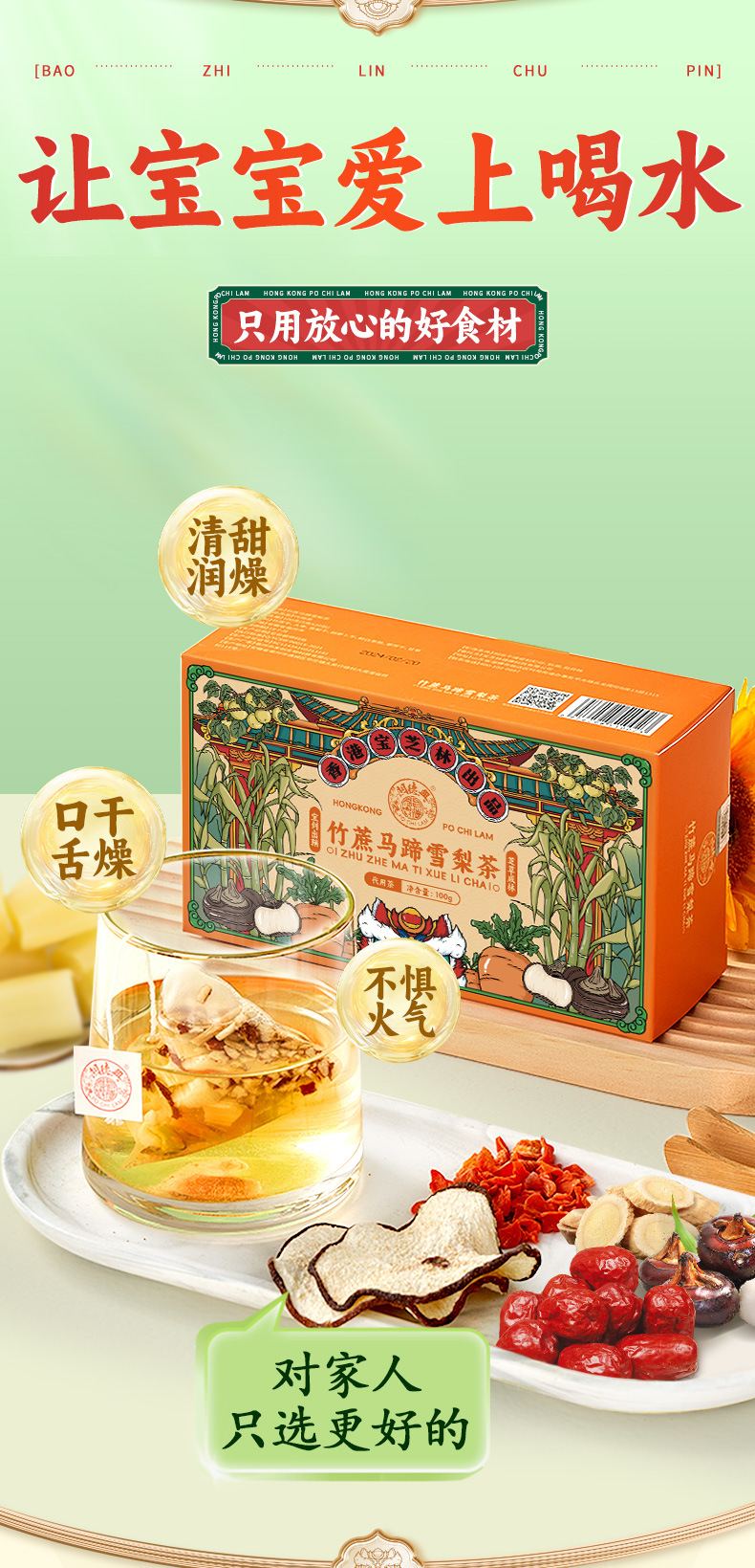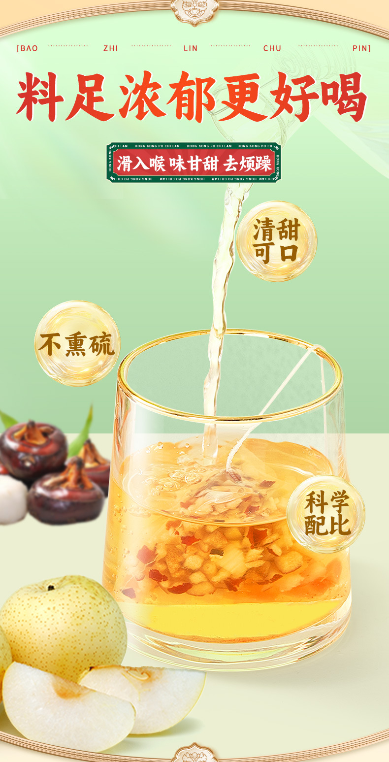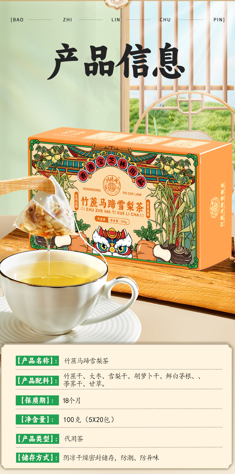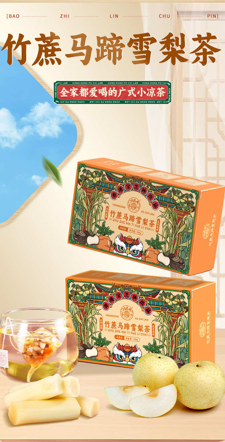 【秋季小甜水❗竹蔗马蹄雪梨茶】雪梨/马蹄/竹蔗/大枣/胡萝卜/鲜茅根/甘草,广式清润凉茶 100g/盒 20袋独立包装