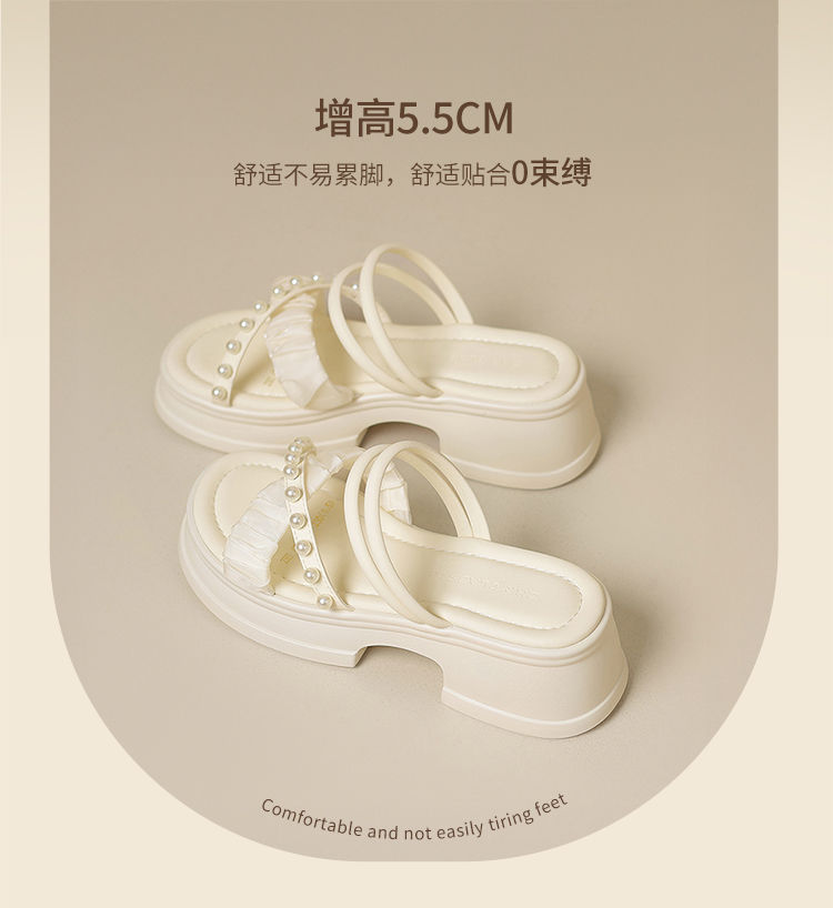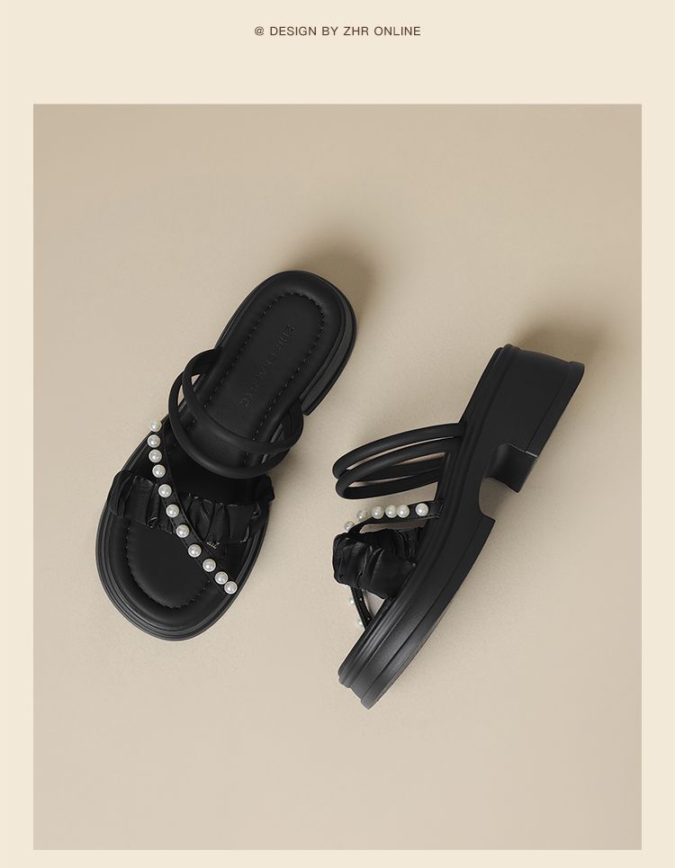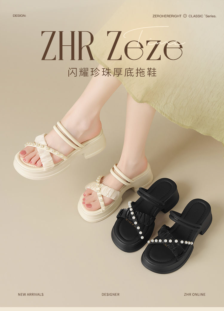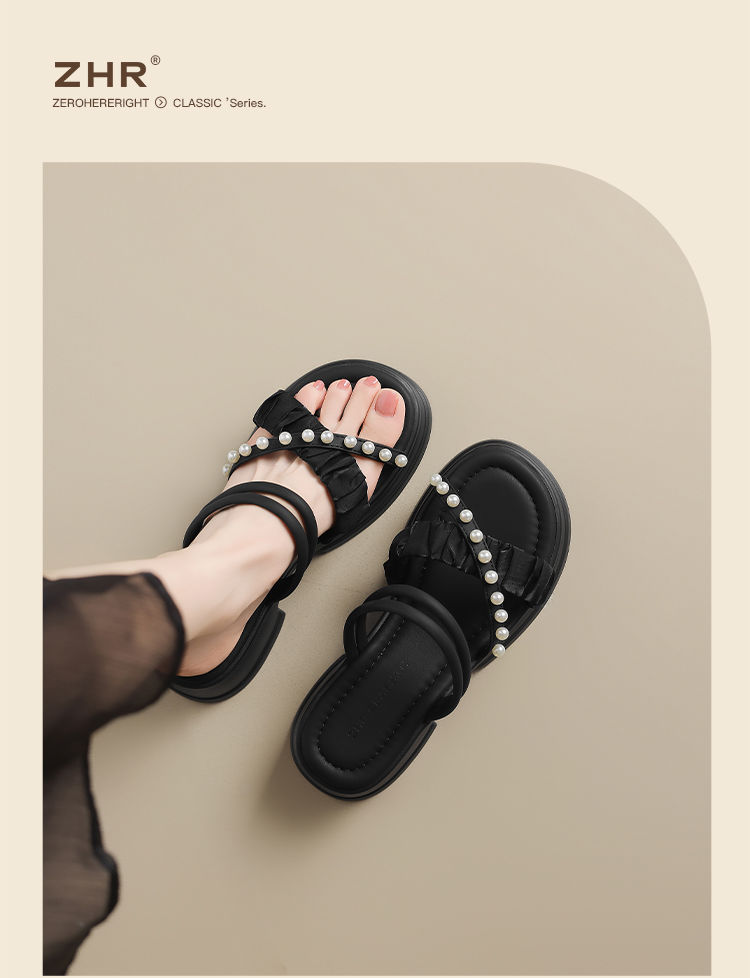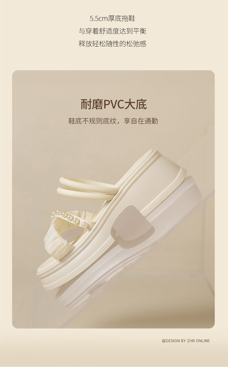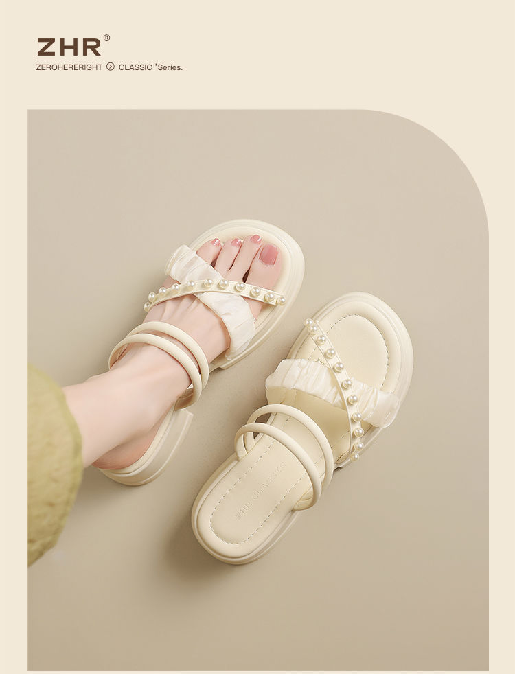 ZHR则则厚底珍珠拖鞋2025新款气质百搭网纱一字拖仙女外出拖鞋女