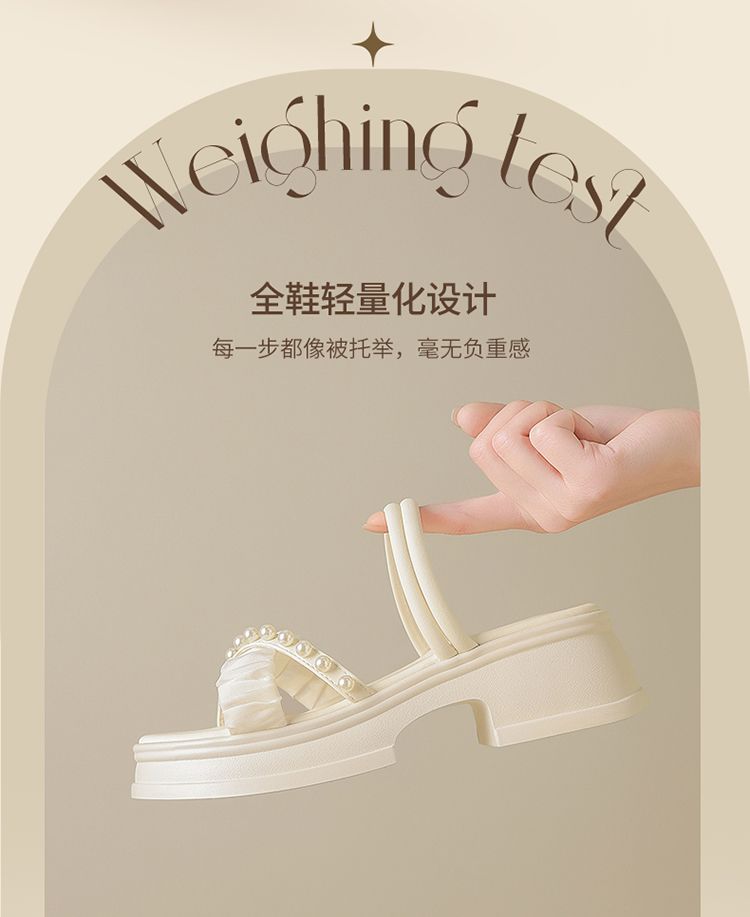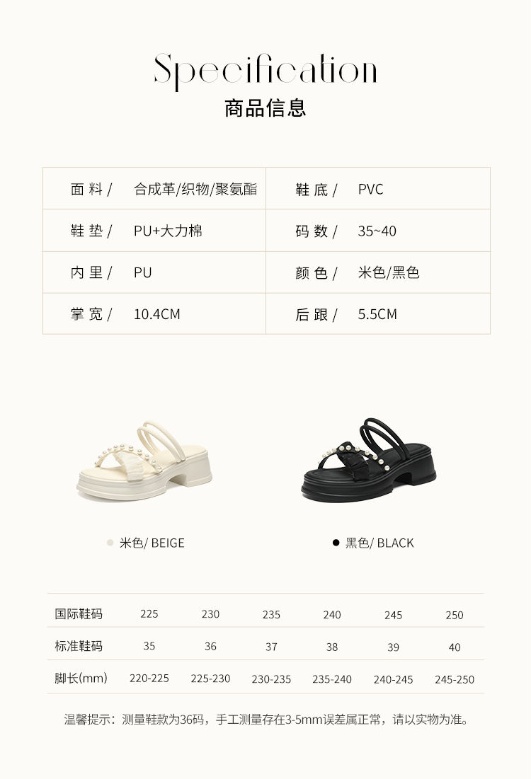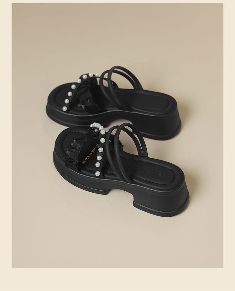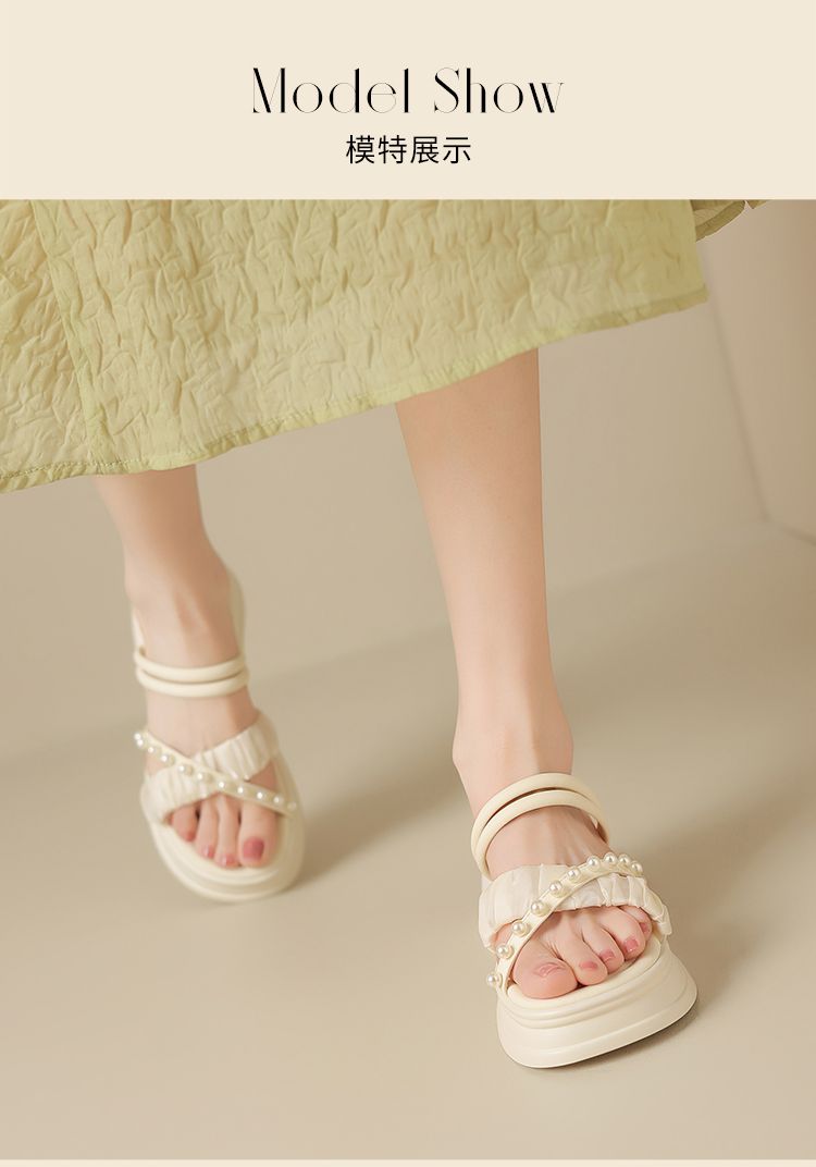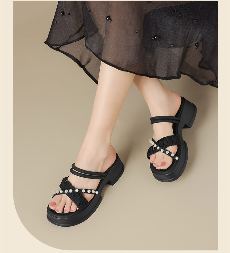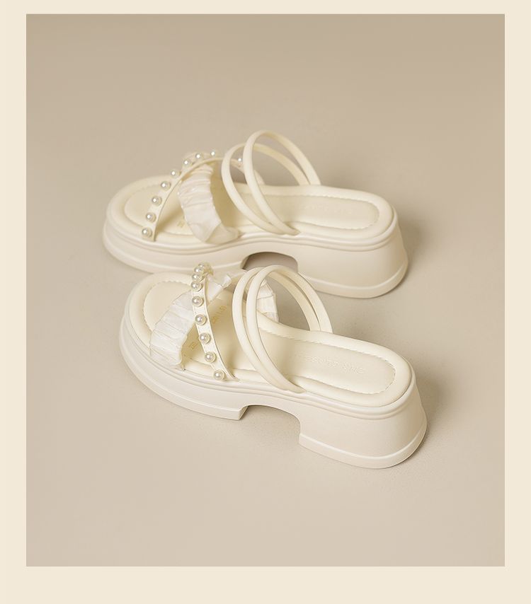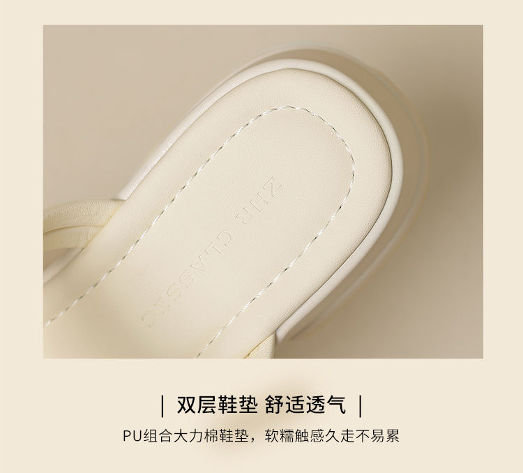 ZHR则则厚底珍珠拖鞋2025新款气质百搭网纱一字拖仙女外出拖鞋女