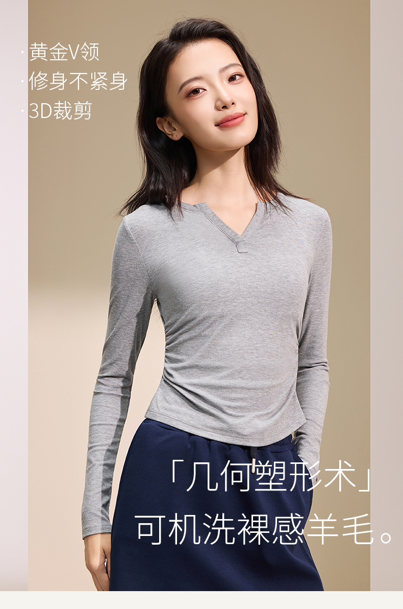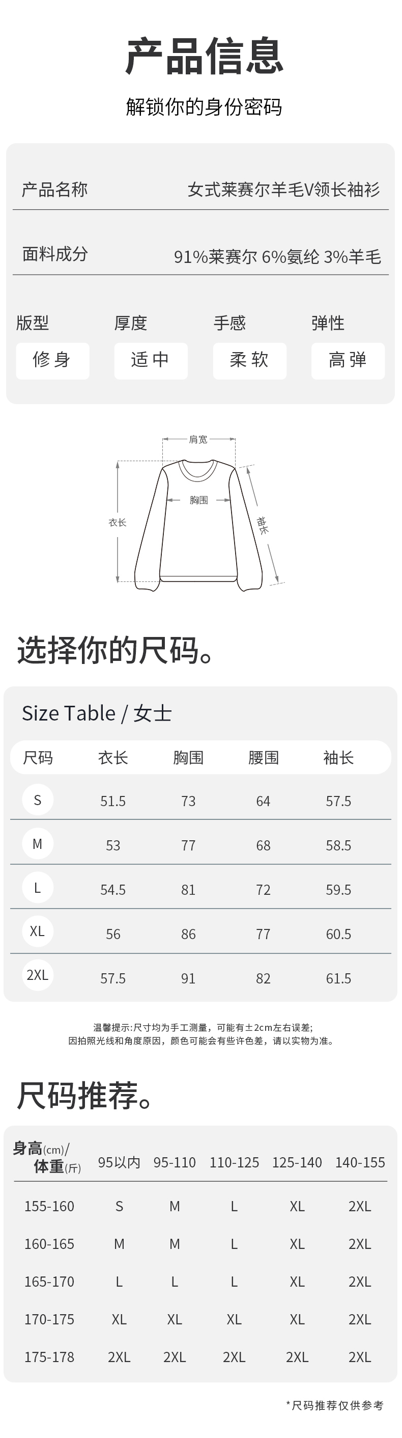 【秋上新】I'd爱帝女式莱赛尔羊毛V领长袖衫