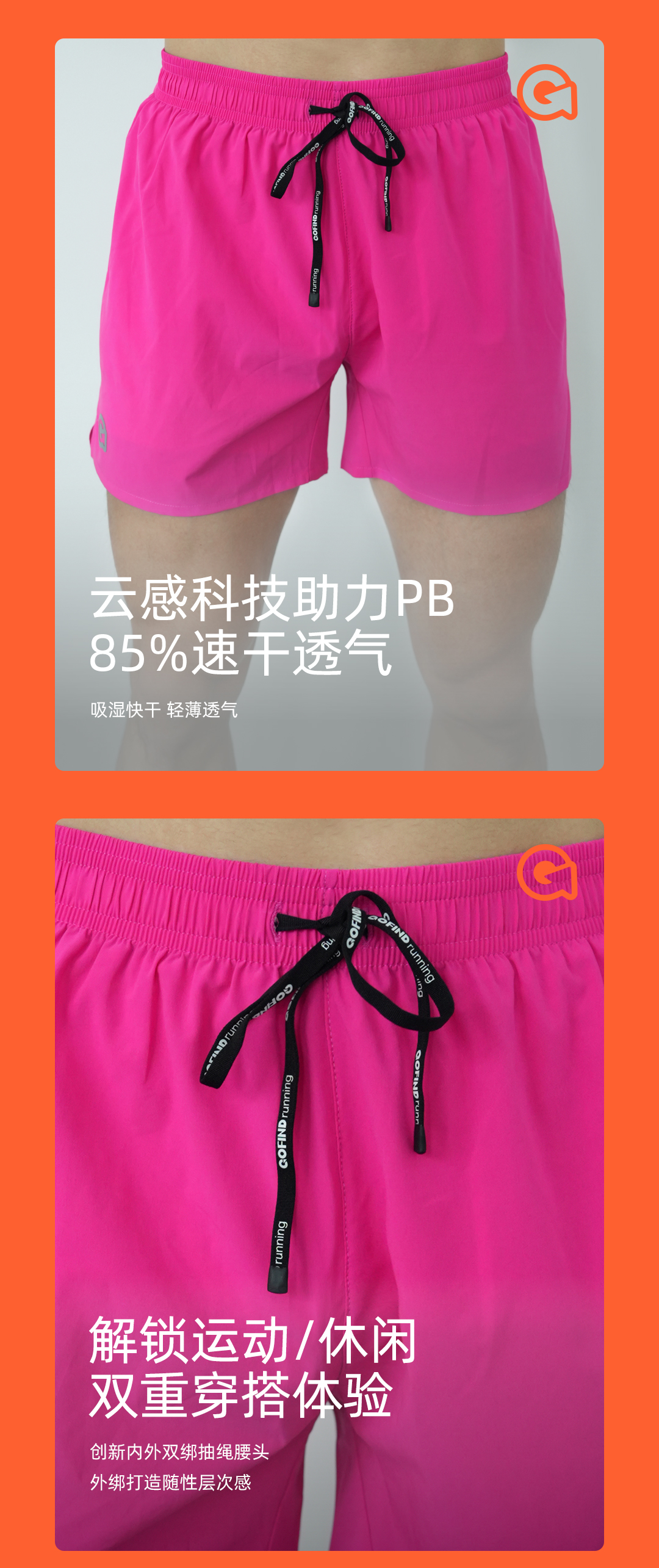 果凡云感速干短裤男女款 高透气反光夜跑运动裤E01GSMS319