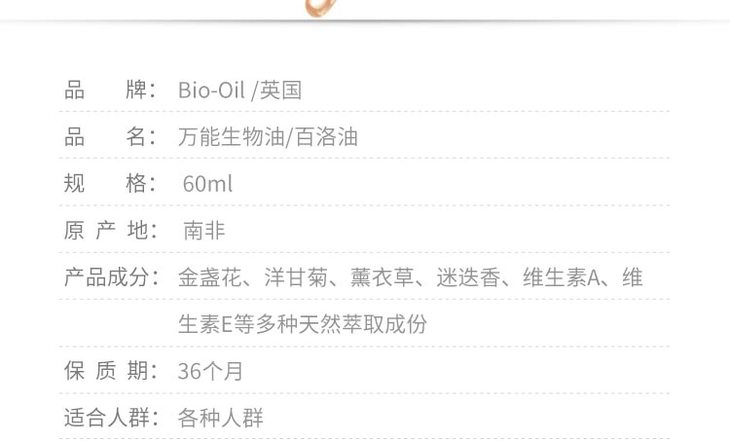 【百洛】英国Bio-Oil多效生物油百洛油60ml【预防妊娠纹】