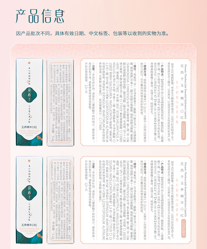 花西子雕花口红精华玉光版/淡唇纹/显白/持色/送女友素颜