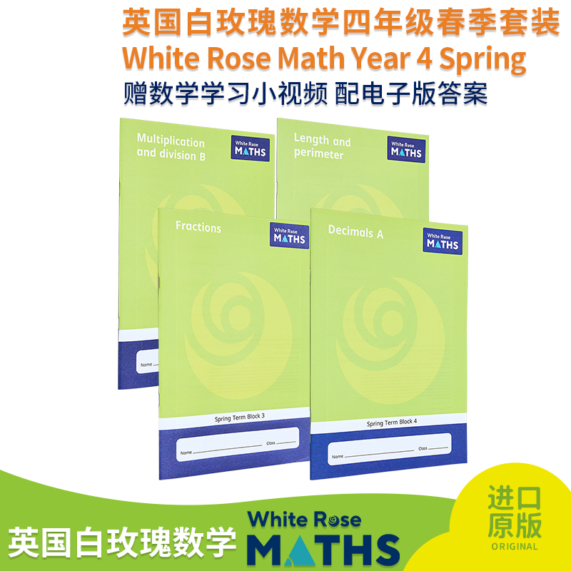 预售 【中商原版】英国白玫瑰数学练习册四年级春季套装4册 White Rose Math Year 4 Spring Block 1-4 小学乘除法分数学习英文原版