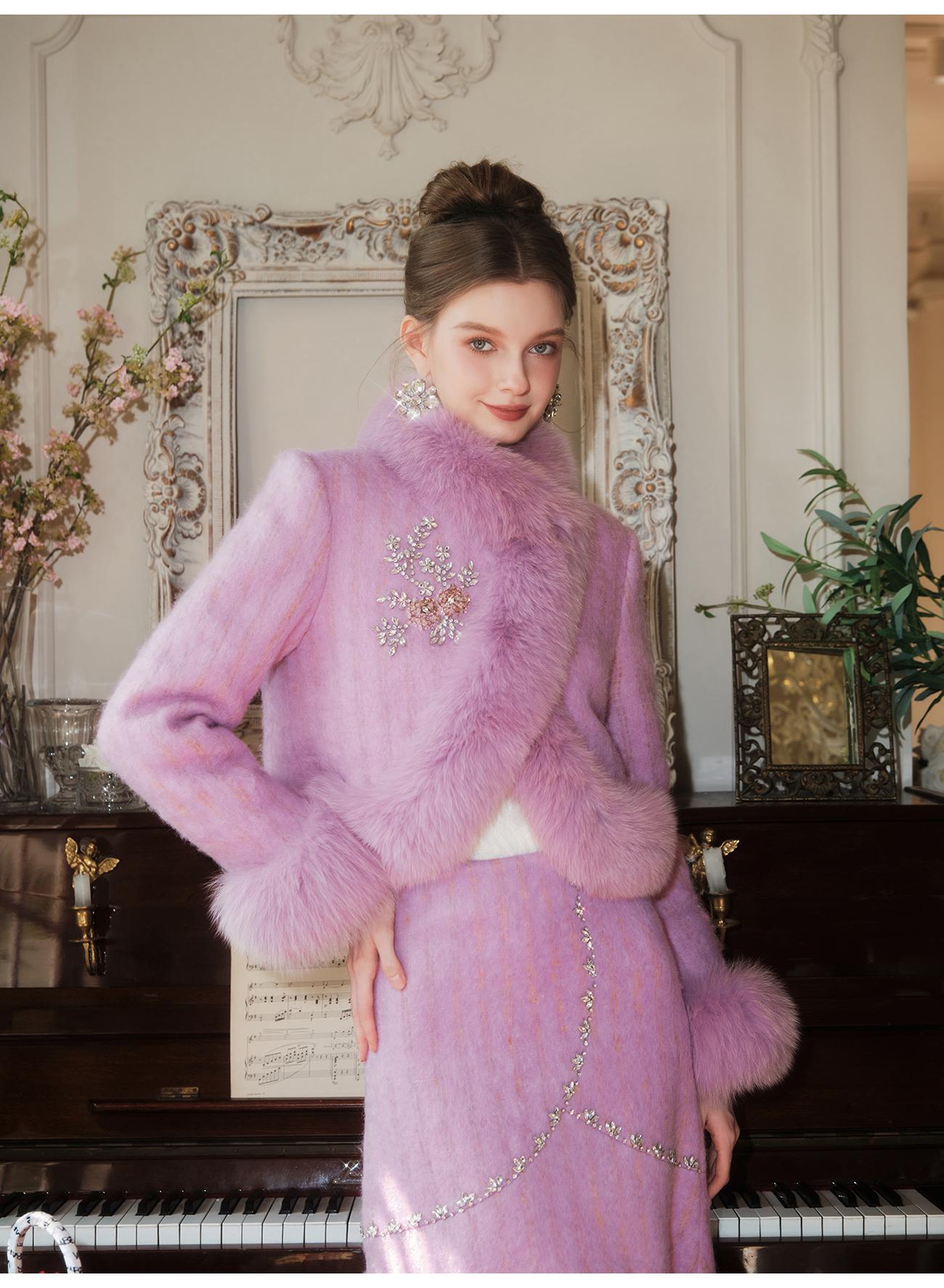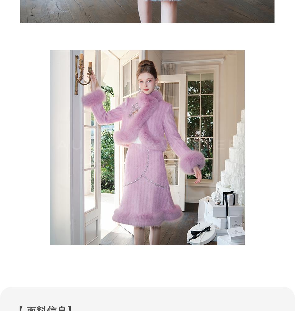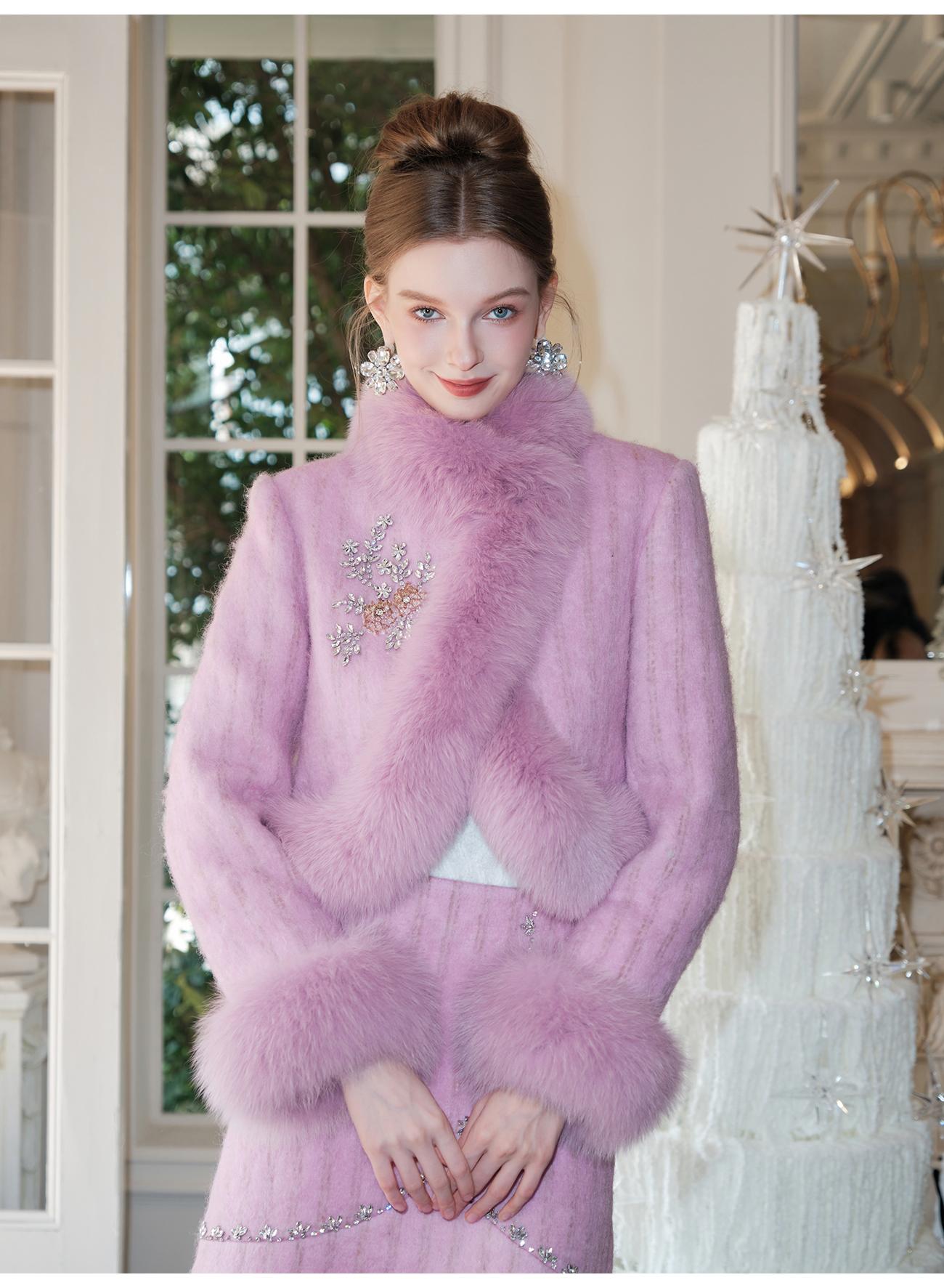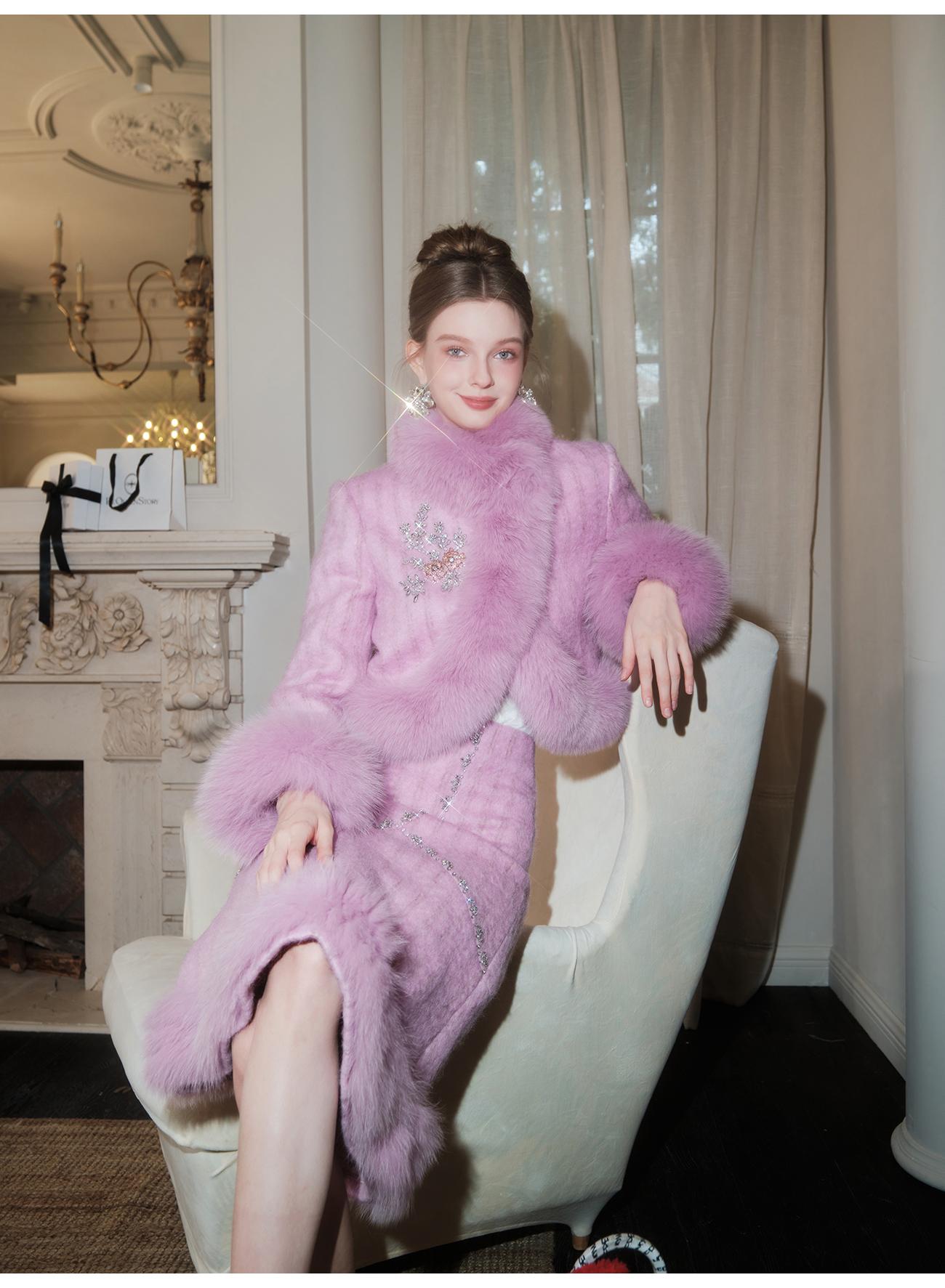 【年终福利,不退不换】【紫苏海棠】羊毛混纺拼接狐狸毛填充白鹅绒外套&半裙