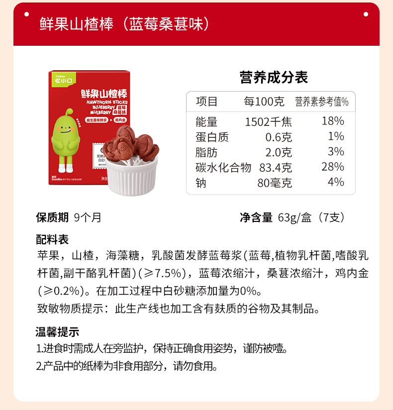 【新品上市】英氏忆小口100亿益生菌山楂棒【89元任选5件+5件礼品】