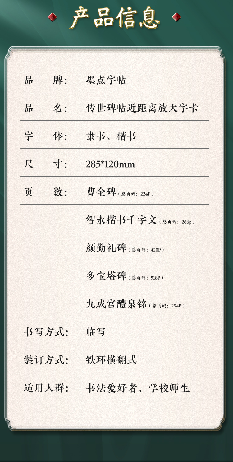 墨点字帖 传世碑帖近距离放大字卡 多宝塔碑颜真卿曹全碑智永千字文勤礼碑九成宫原帖精修全文视频教程传世碑帖放大版毛笔临摹字帖