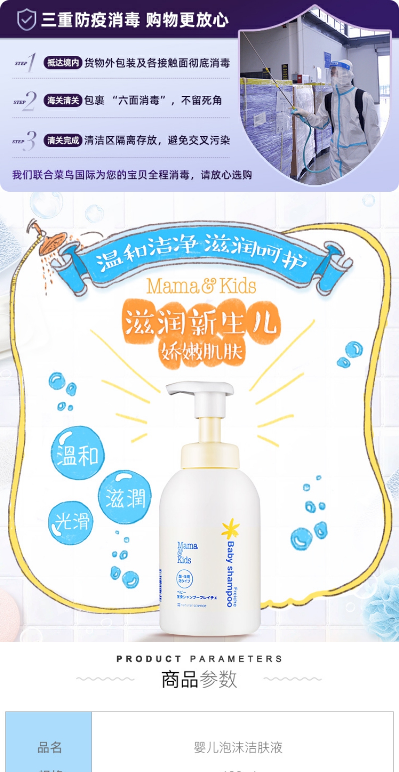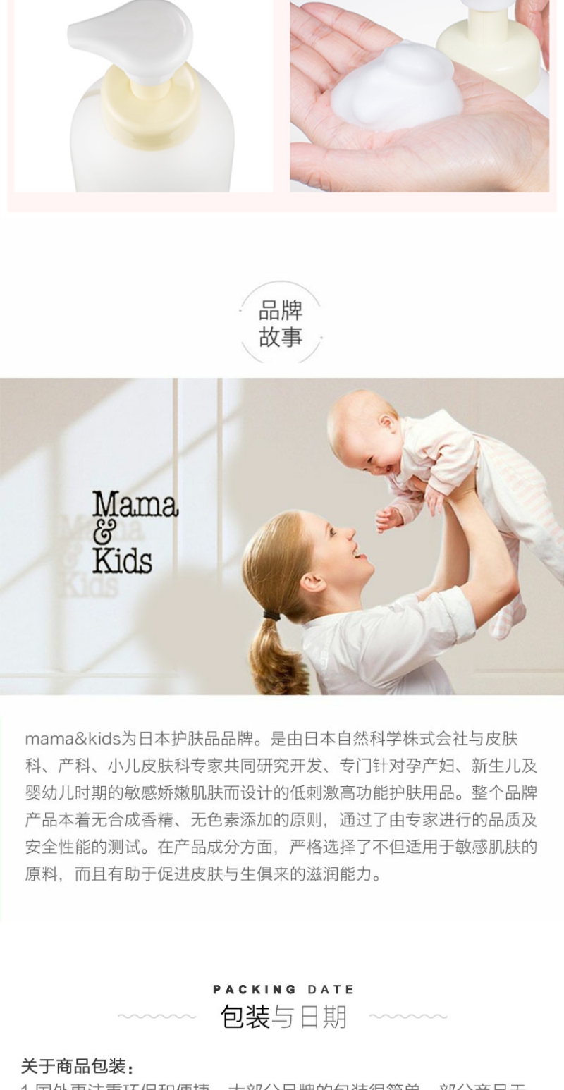 【YZ】MamaKids婴儿泡沫洁肤液保湿沐浴露氨基酸460ml