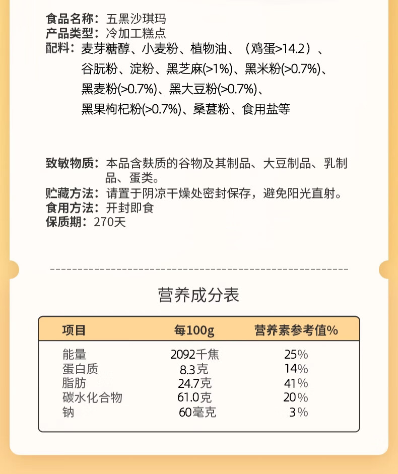 谷威低GI未添加蔗糖五黑沙琪玛350g