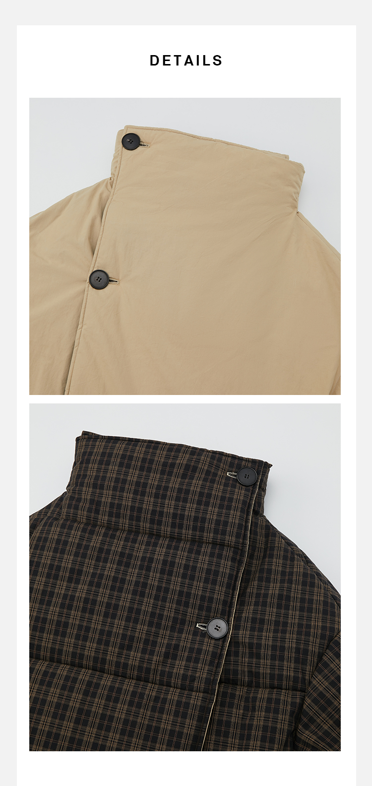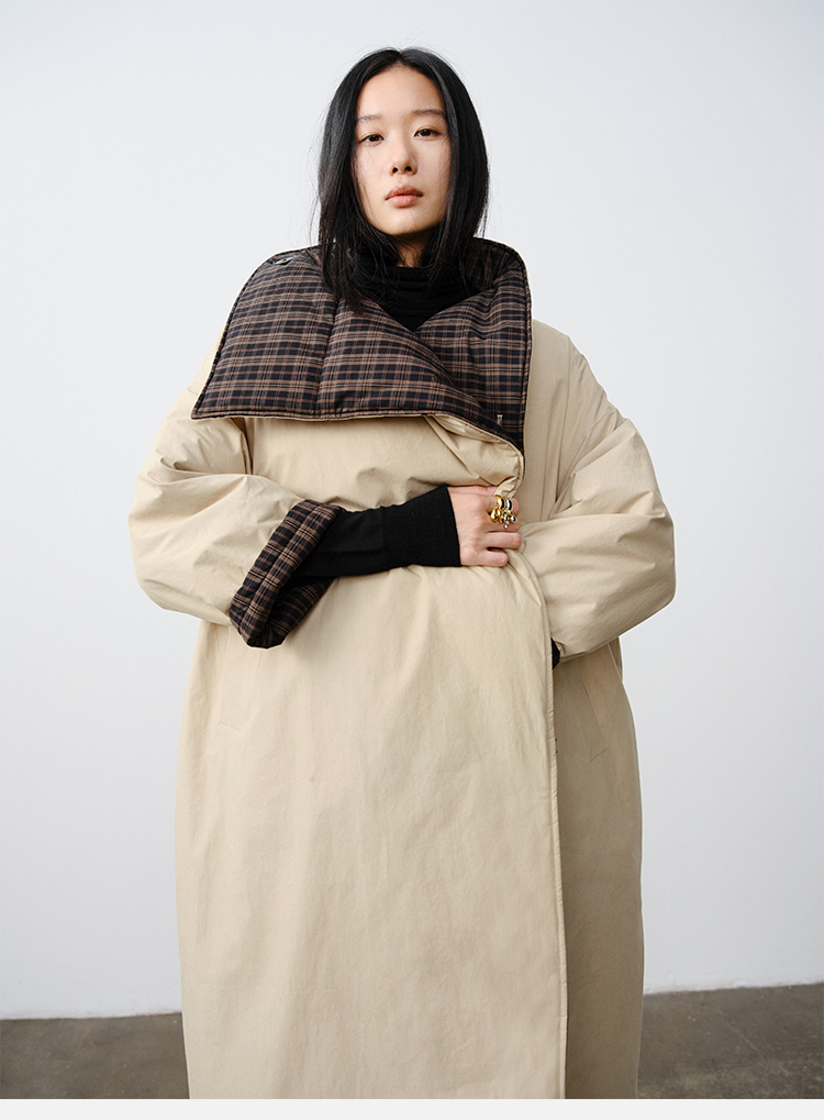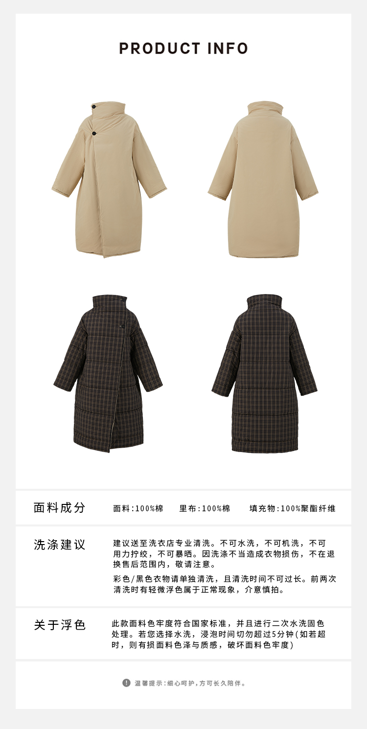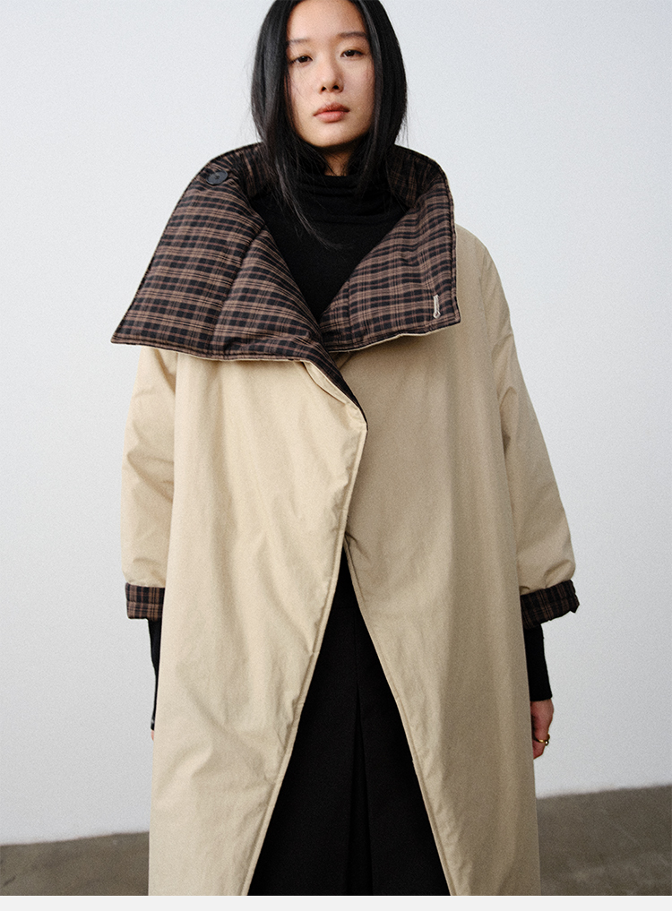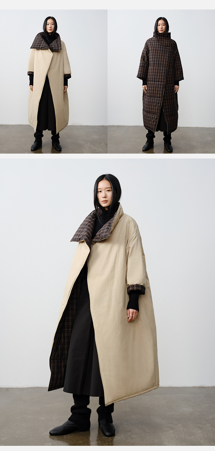 HIDEMI 格纹正反两面穿不对称极简oversize长款厚款大棉服保暖大衣