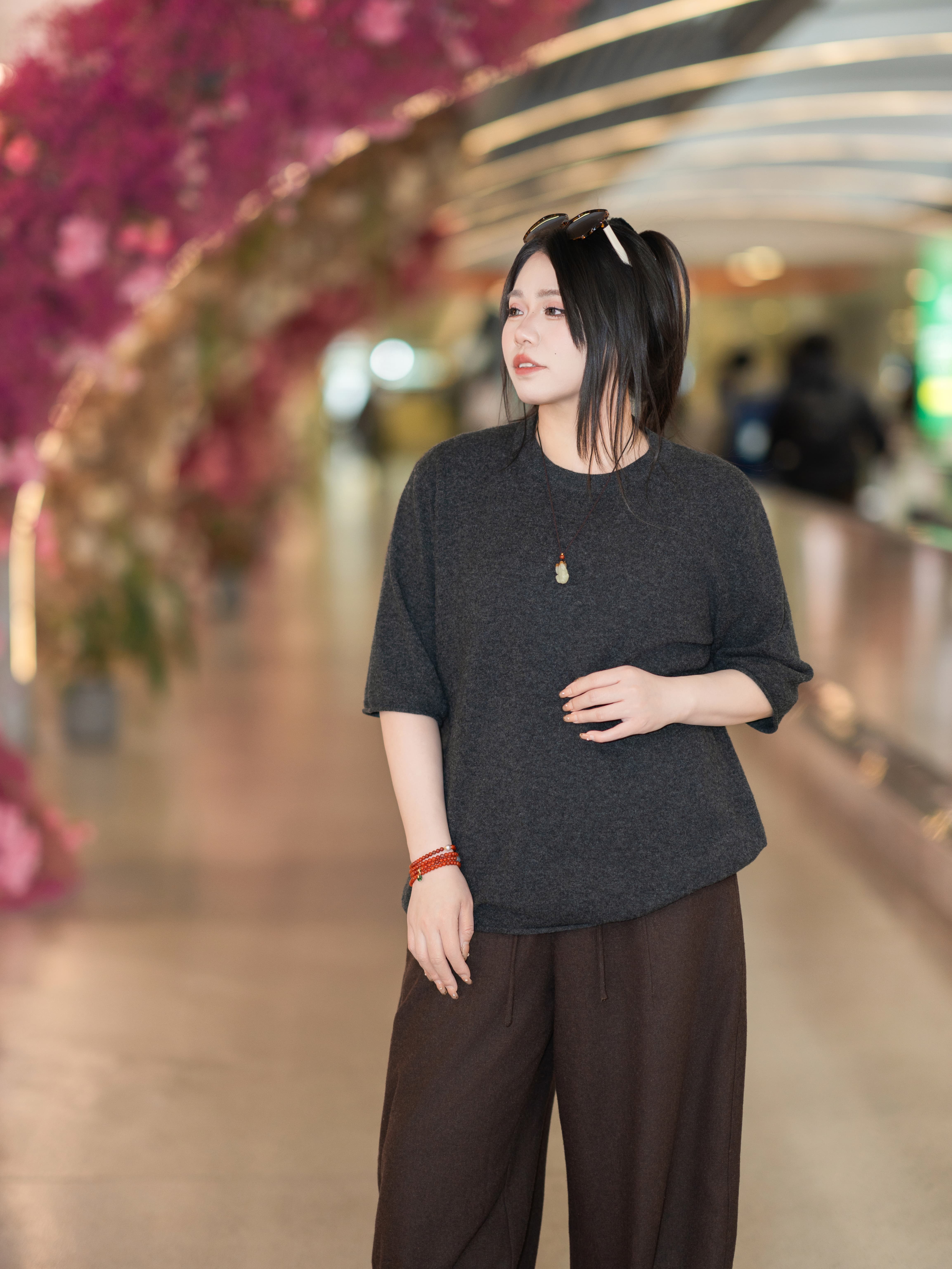 一周发货【100%绵羊毛 中袖针织衫】【正码正拍】高级感慵懒风,超舒适羊毛,纯羊毛衫中袖毛衣,巨软极简圆领百搭