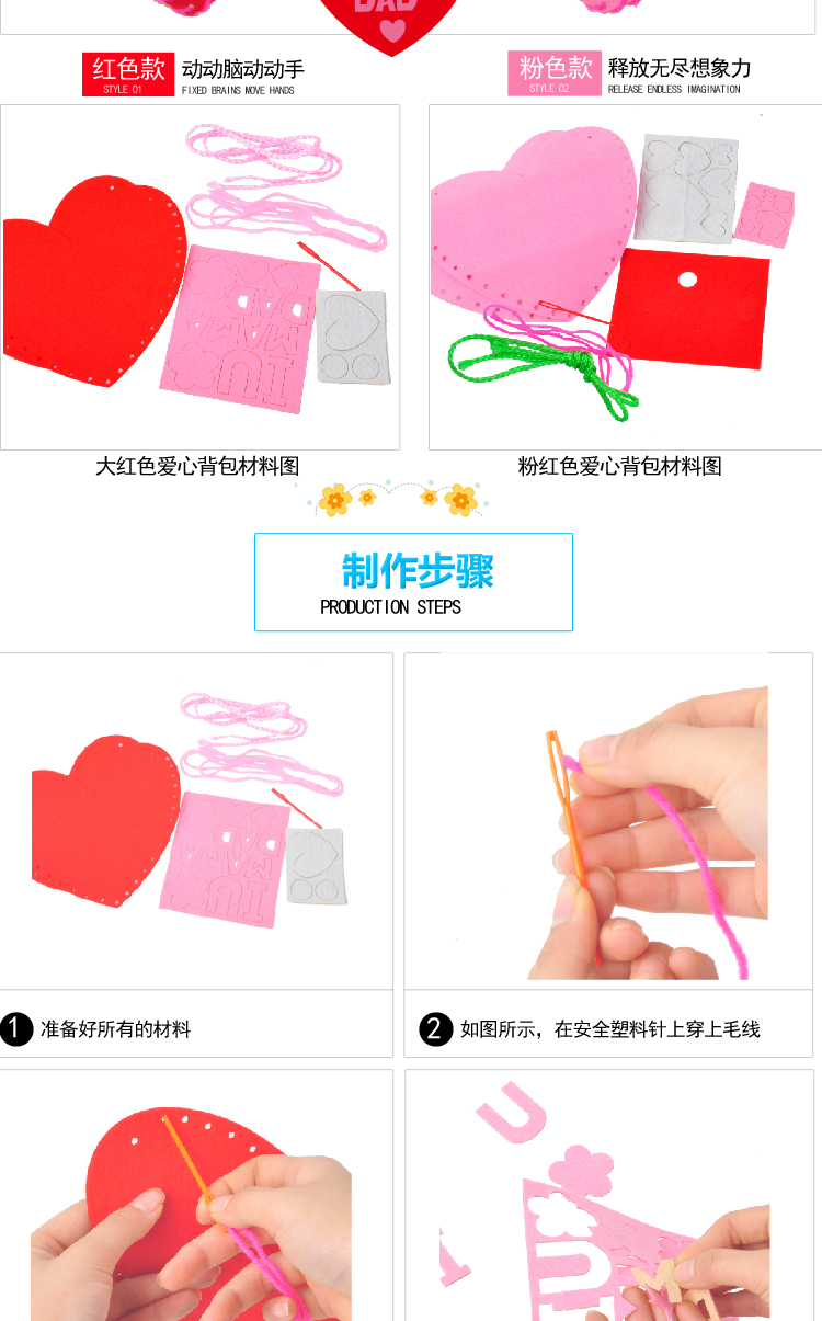 diy不织布 LOVE爱心背包 教师节幼儿园无纺布手工缝制背包制作材
