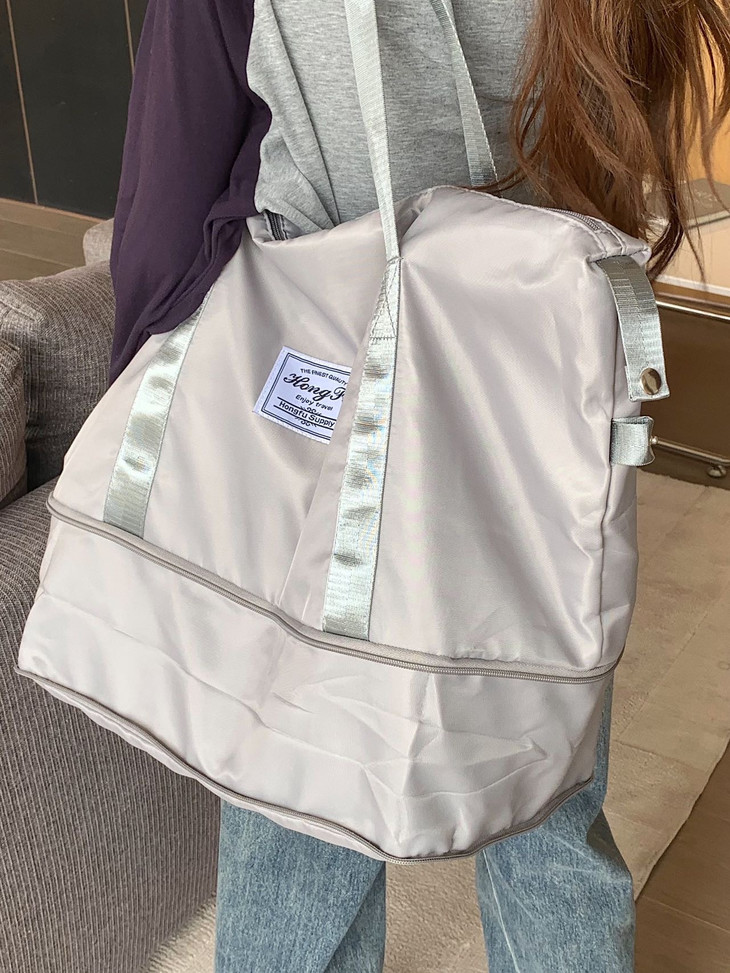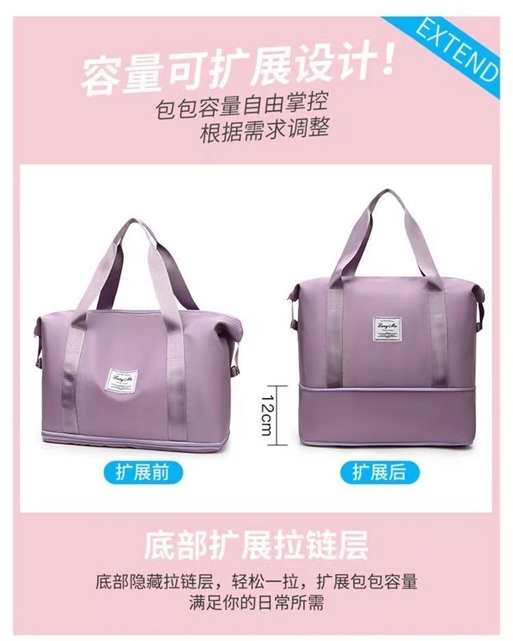 手提大容量防水 行李包袋子收纳包出差待产 旅游短途必备 宝妈 上班族的最爱 底部采用拉链式隐藏扩展功能,还可以放大哦!! 让您在出行中解决物品过多或过少带来的困扰