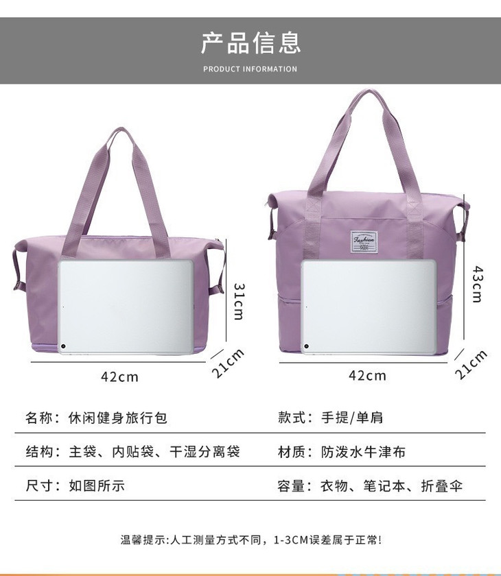 全能包=旅行包+日常背包+妈咪包+瑜伽健身包+待产包‼️ 👜多功能手提挎收纳包 大容量巨能装! 👏底部可扩展设计 容量又多了20% 💦牛津布材质 防水防潮耐磨耐刮 ✨内里还是干湿分离的 太实用了 🧳背部有行李带 可插入行李箱拉杆 不会掉 ✈上学 | 出差 | 短途旅行 | 健身 | 露营