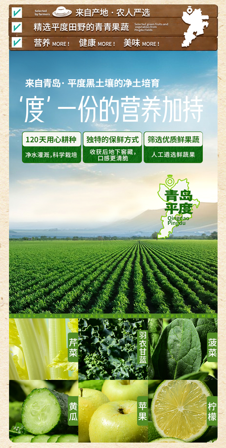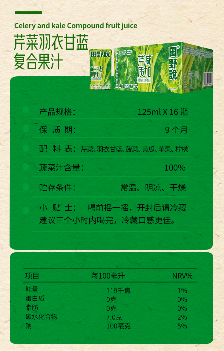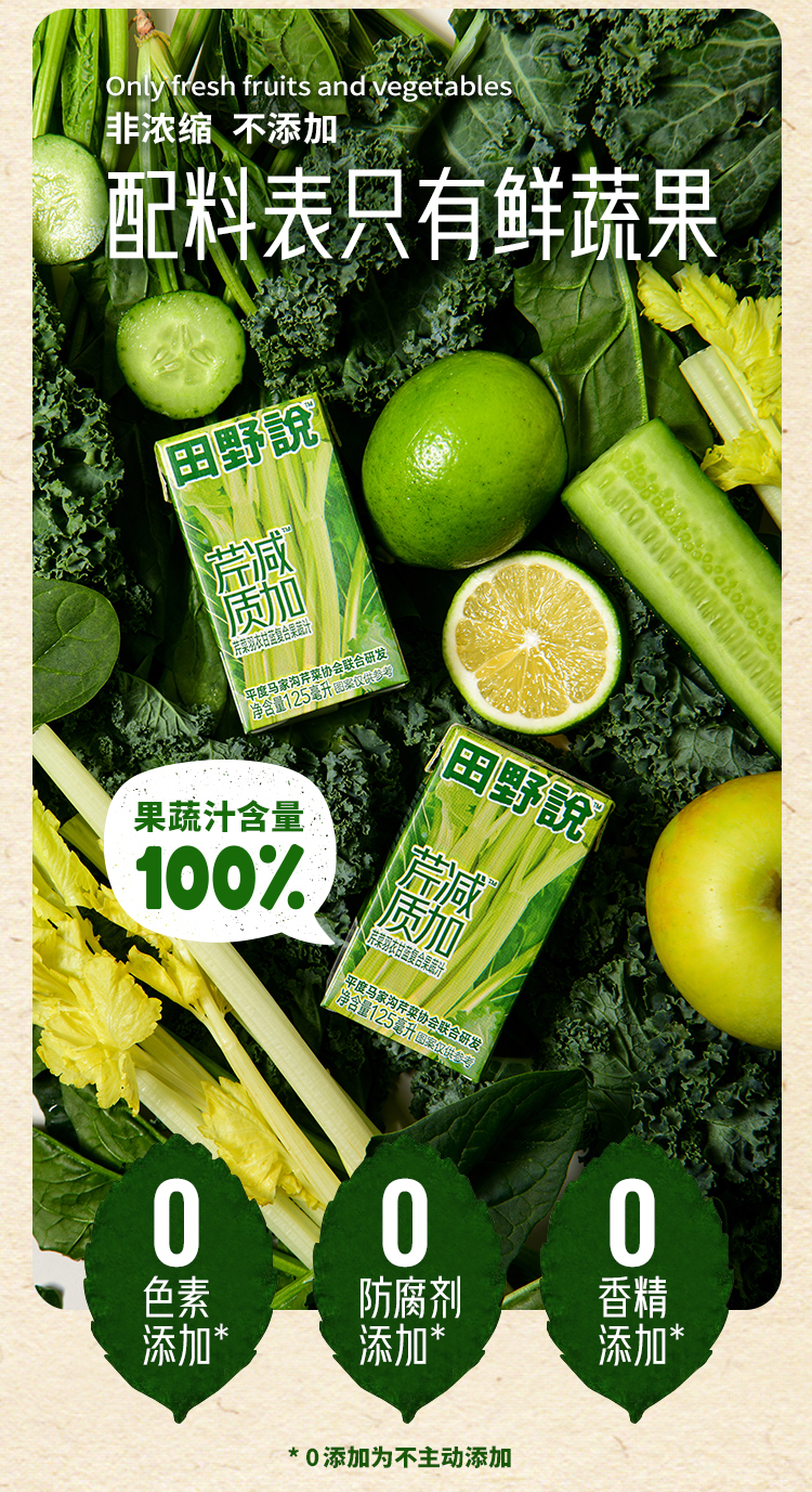 田野说芹菜羽衣甘蓝混合果蔬 配料只有6种新鲜果蔬