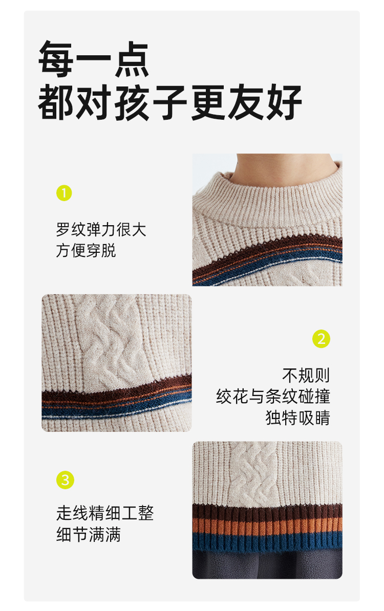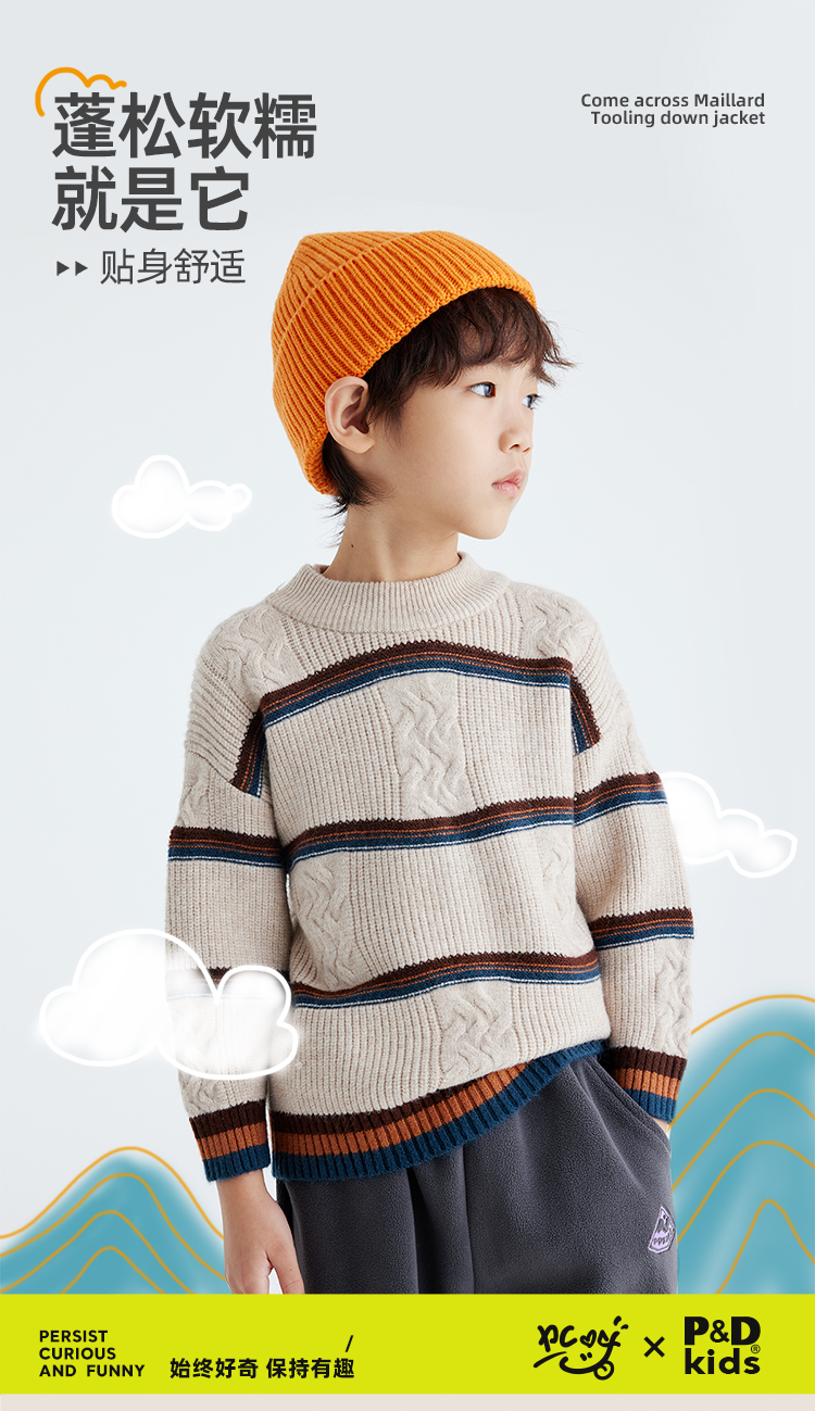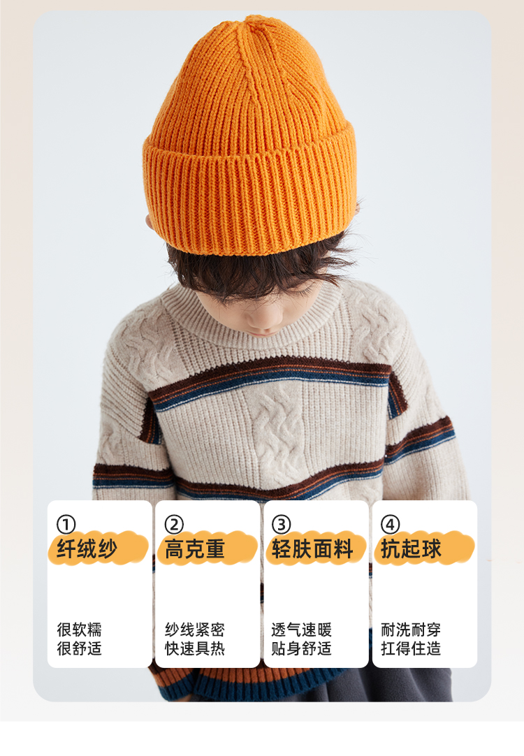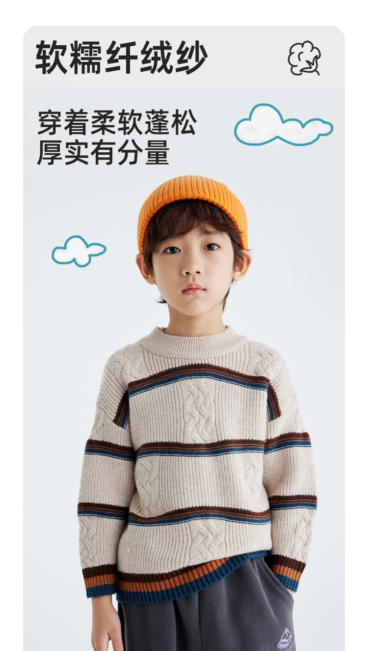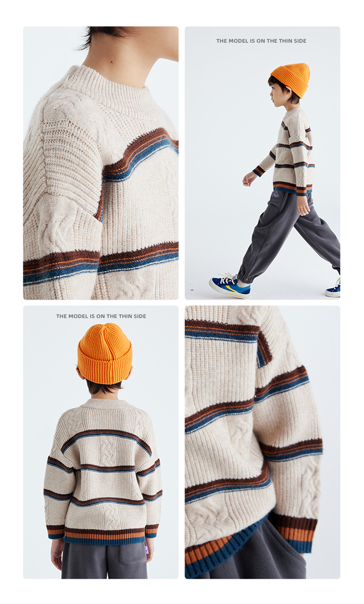 【发热速暖 抗起球纱线】儿童撞色绞花毛衣 PDMY2411