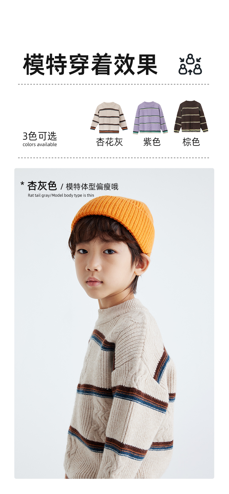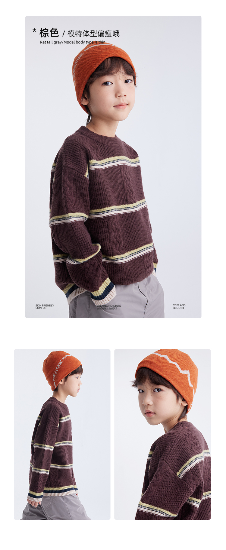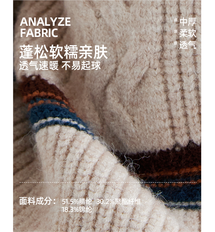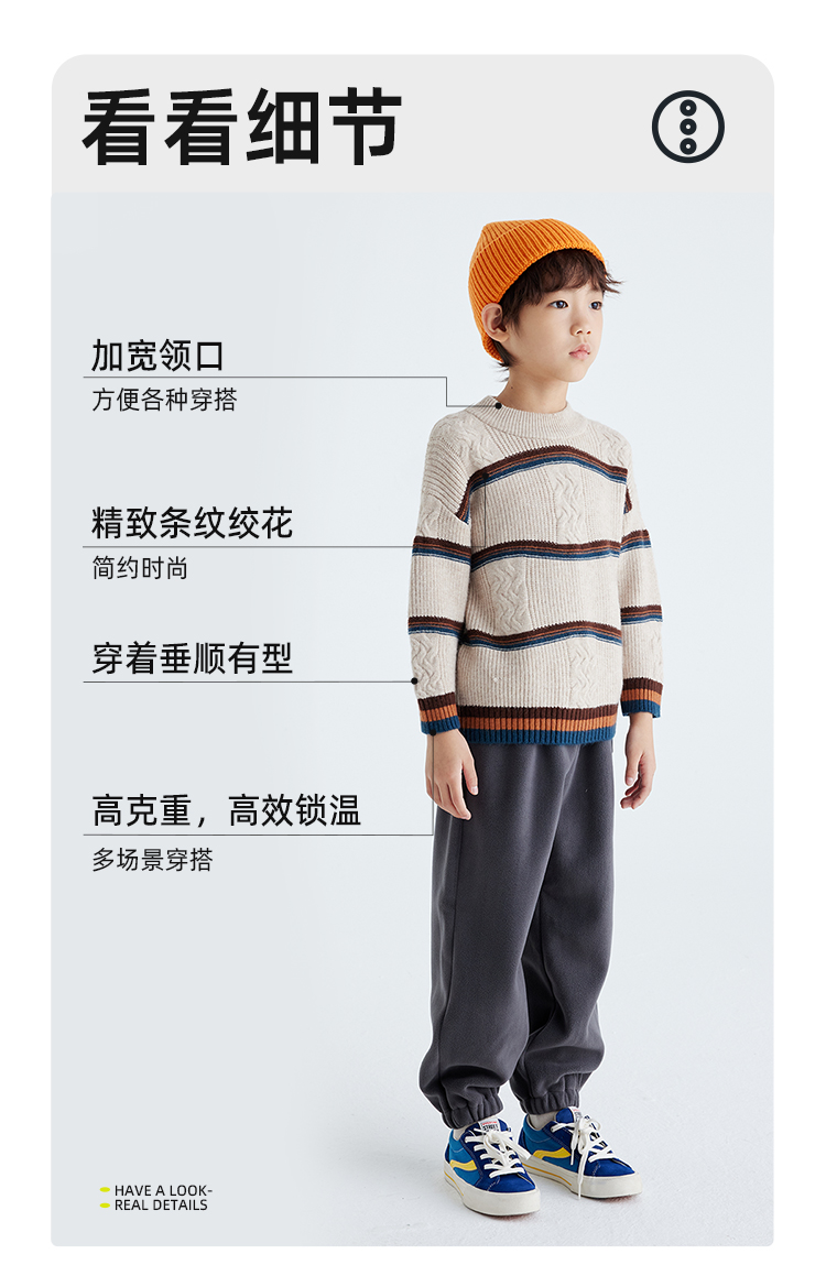 【发热速暖 抗起球纱线】儿童撞色绞花毛衣 PDMY2411