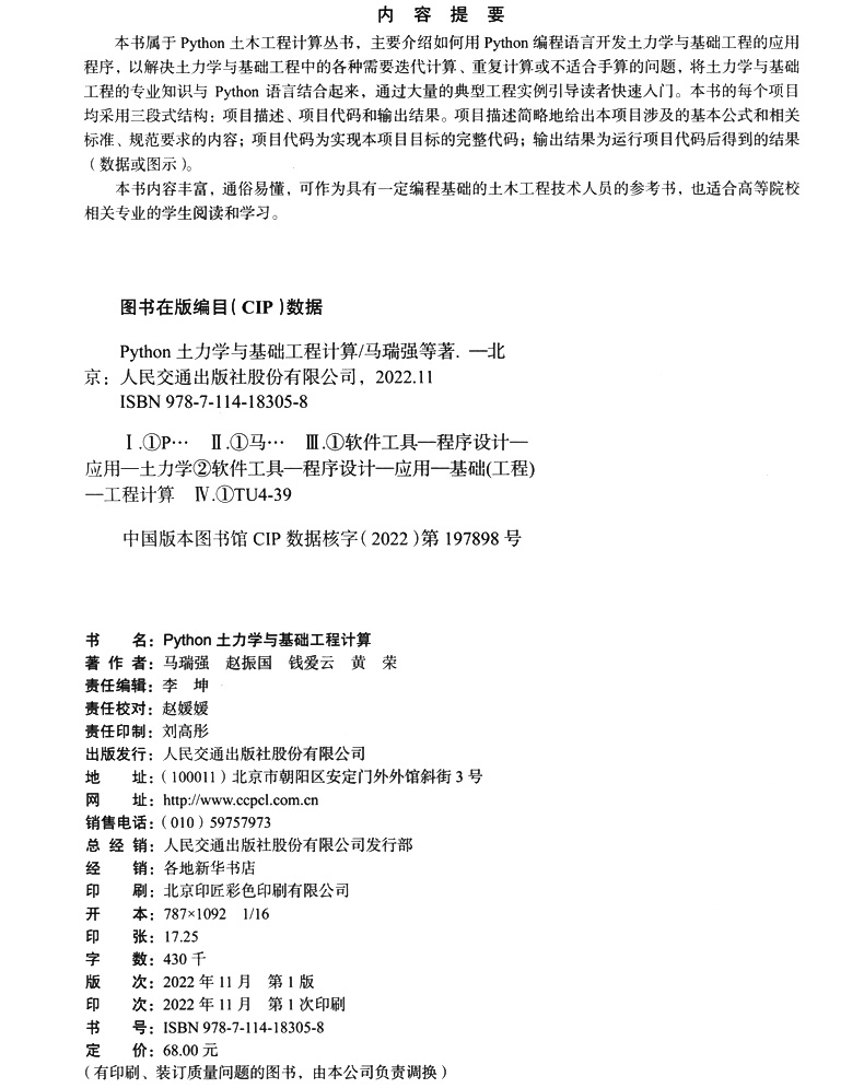 书名:Python土力学与基础工程计算